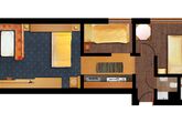 APPARTEMENT FÜR 4-5 PERSONEN 55 qm Doppelzimmer, Dusche/WC, Einzelzimmer, gemütlicher Wohn-/Schlafraum und Balkon.