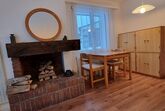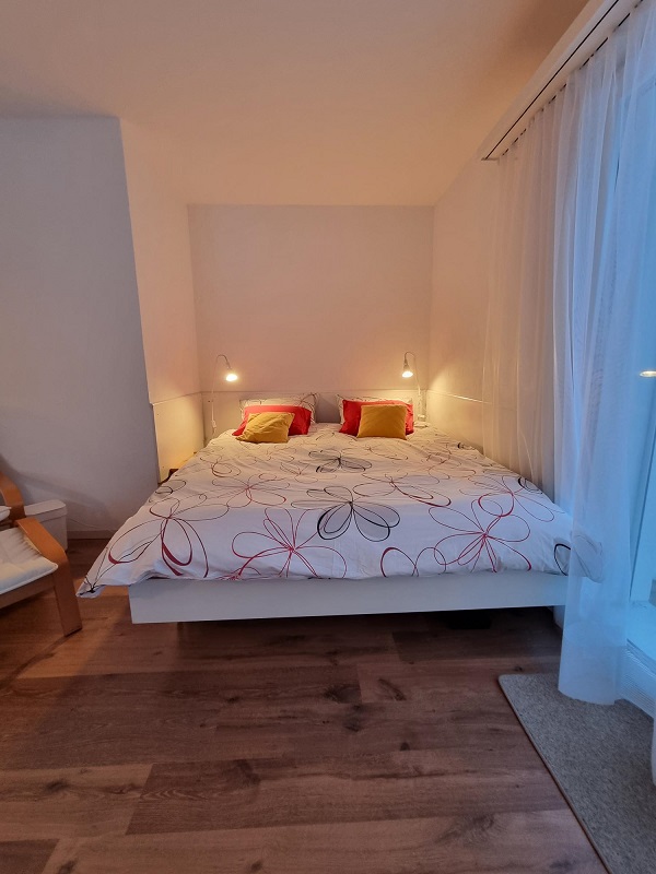 Küche offen gegen Wohnraum mit Einbauschränken, Kochfeld, Backofen, Kühlschrank mit Gefrierfach. Wohnzimmer mit Esstisch, Lesestuhl, TV, W-Lan. Schlafzimmer im Wohnbereich mit integriert, hier fidnen Sie auch einen Schrank für Ihre Kleidung. Da Badezimmer geht von der Küche aus ab, hier haben Sie ein WC, Lavabo und eine Dusche. Der Kamin ist nicht zur Benutzung geeignet. Balkon nach Richtung Westen. Im Haus gibt es eine Saune die gegen eine kleine Gebühr genutzt werden kann. Ebenso gibt es eine Waschküche mit einer Waschmaschine und einem Tumbler. Die Wohnung verfügt über die Mitbenutzung des Hallenbads. Stellplatz in einer Garage (max. 2m Höhe).