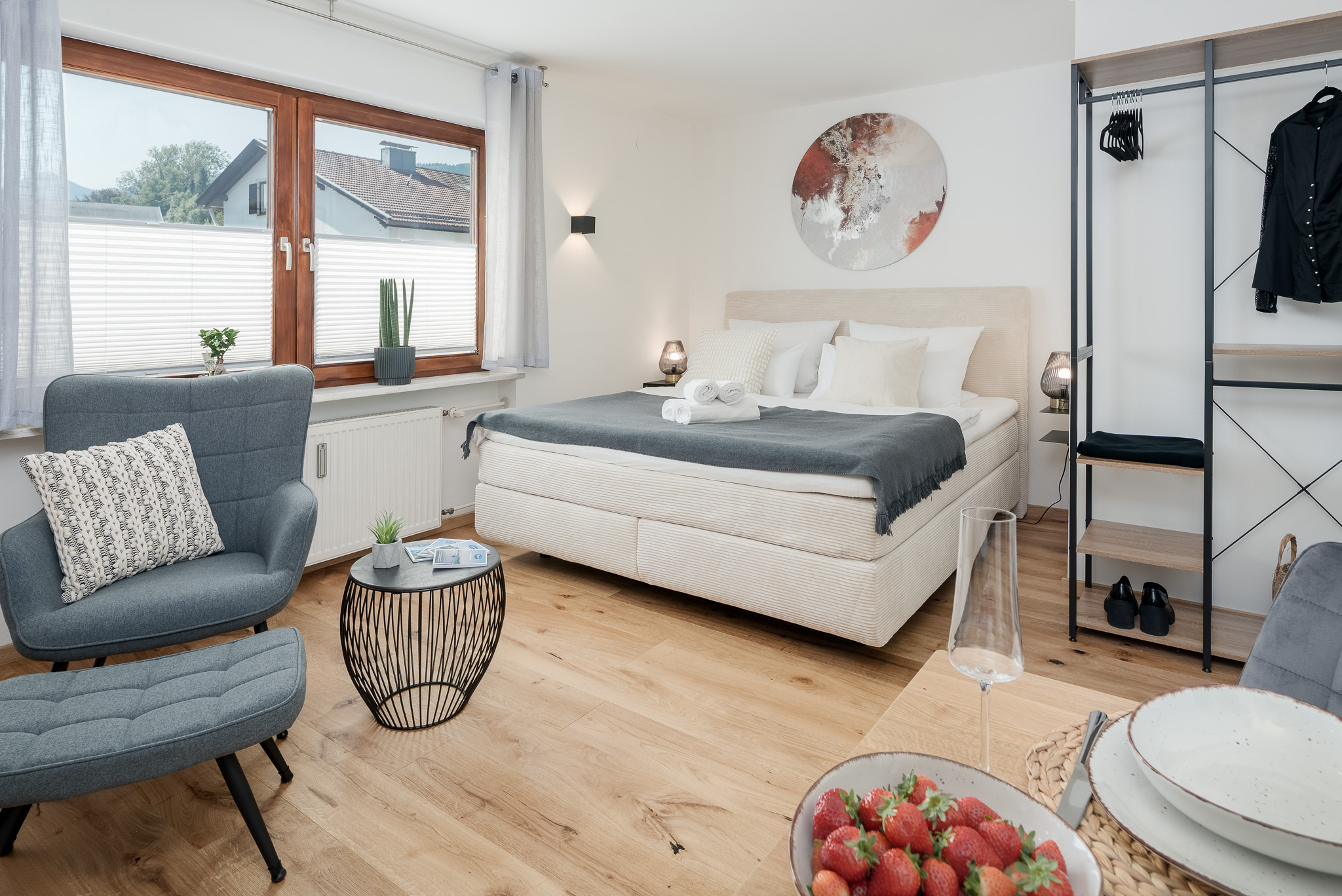 Die Highlights der Umgebung umfassen den wunderschönen Chiemsee, majestätische Berge sowie zahlreiche Möglichkeiten zum Radfahren und Wandern.