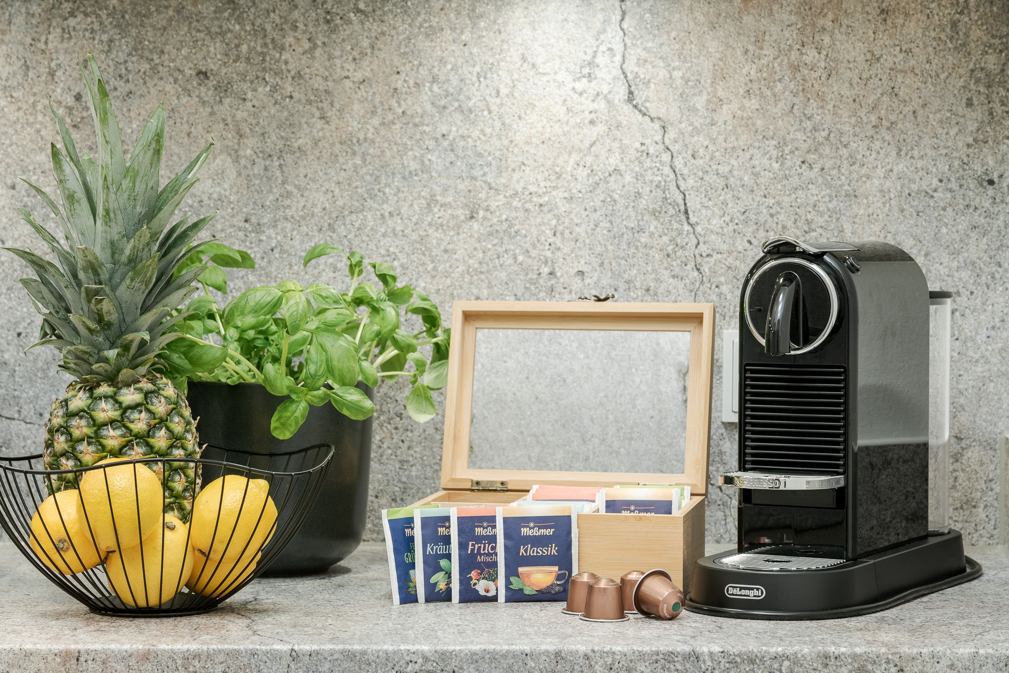 Deinen Tag kannst Du mit einem leckeren Kaffee beginnen und all die schönen Annehmlichkeiten dieses Apartments genießen.