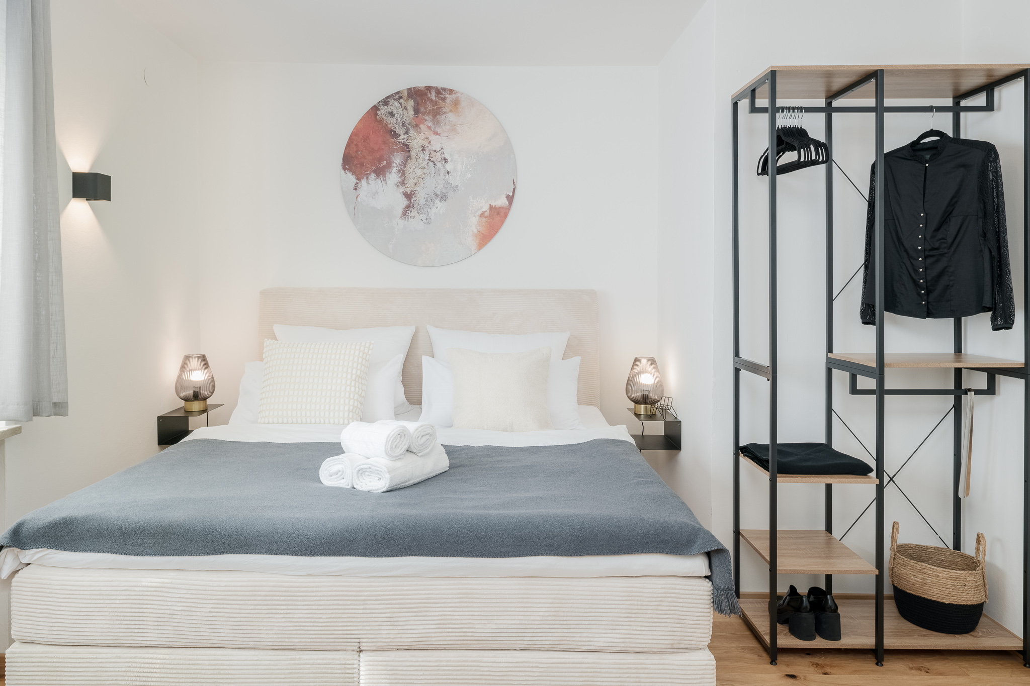 Damit Dein Schlaf erstklassig ist, wartet auf Dich ein gemütliches Boxspring Doppelbett mit Bettwaren auf Hotelniveau.
