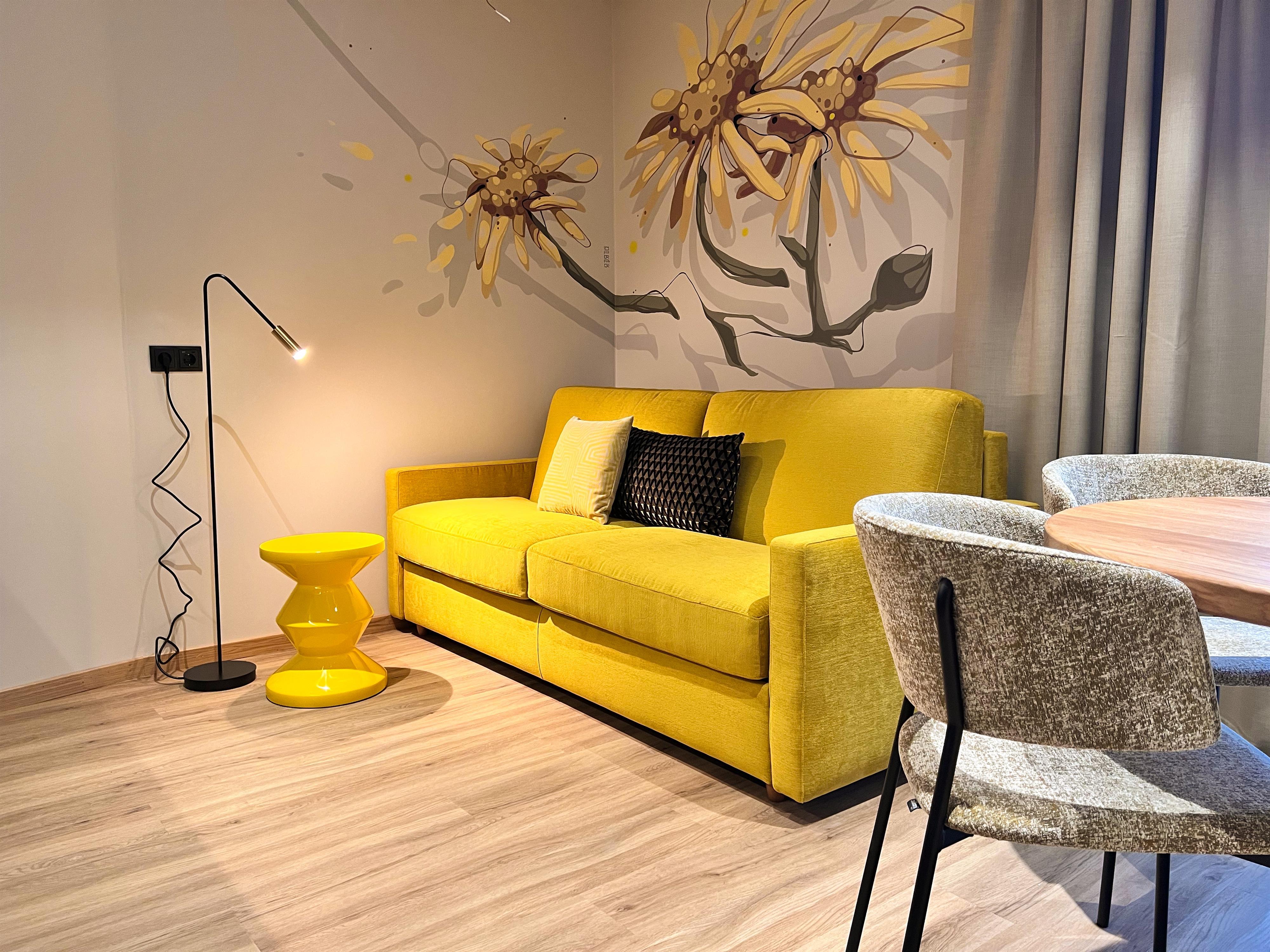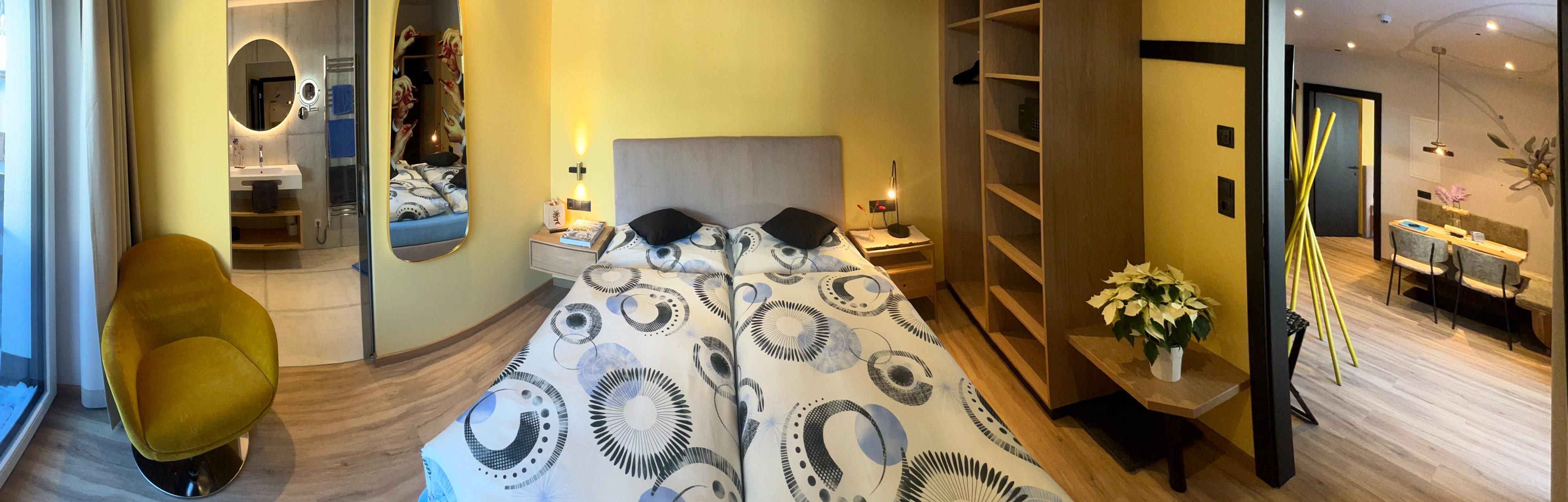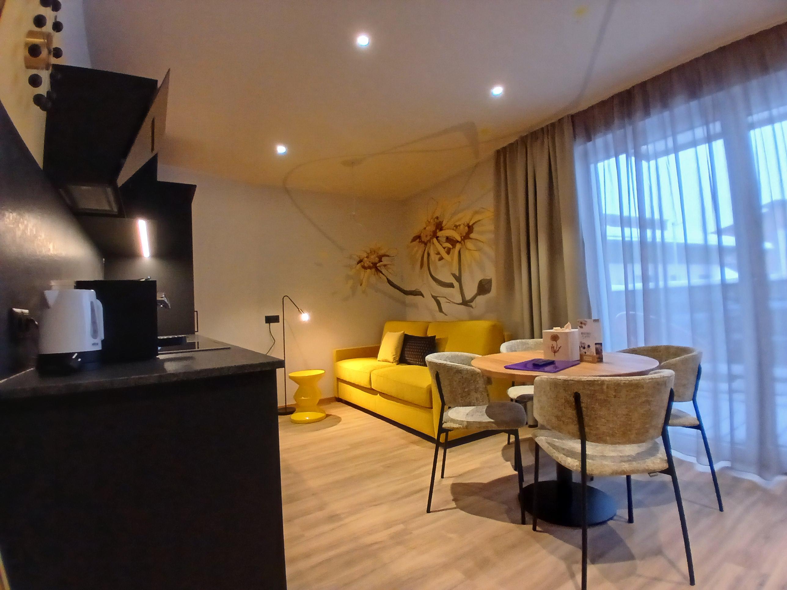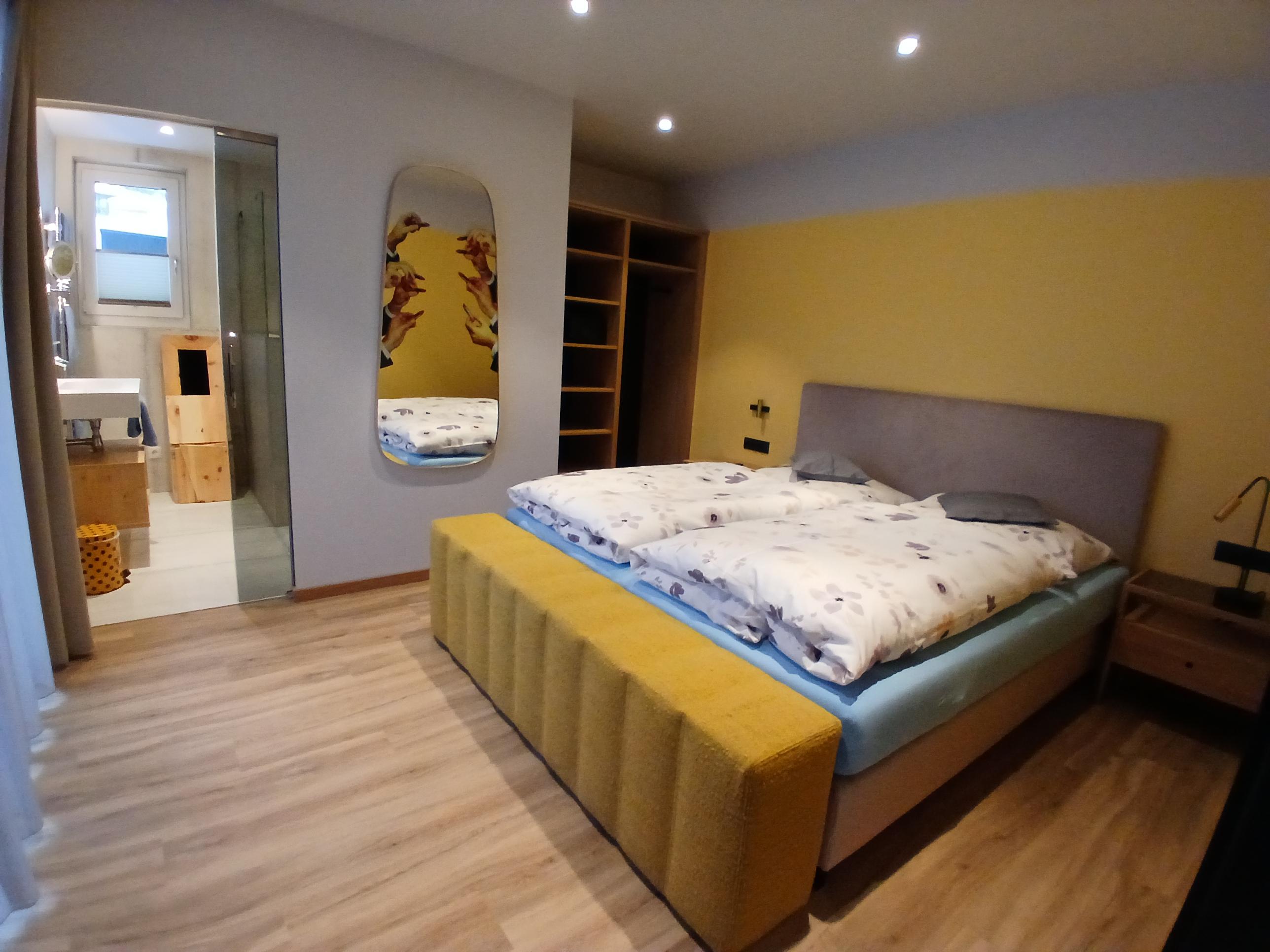 Das Appartement Arnika bringt die goldgelbe Strahlkraft der Arnika, die für ihre muskelentspannende Wirkung bekannt ist, in eine helle und einladende Umgebung. Die leuchtende Farbe der Blume verleiht jedem Raum eine warme Note und schafft eine inspirierende Atmosphäre.