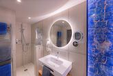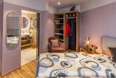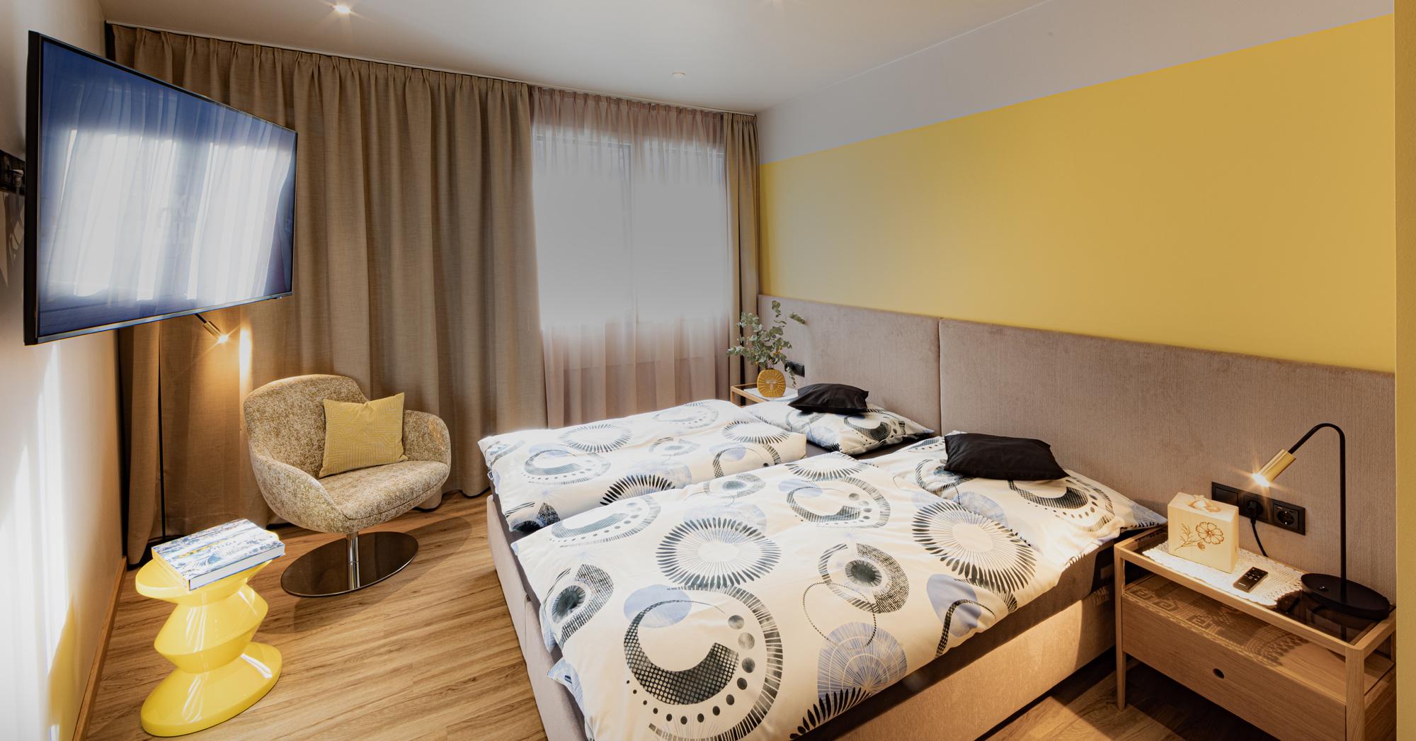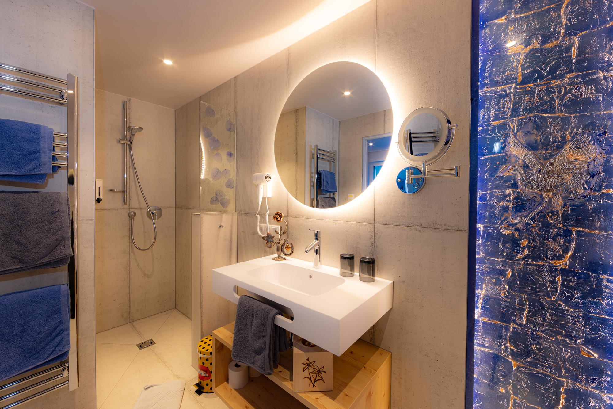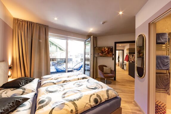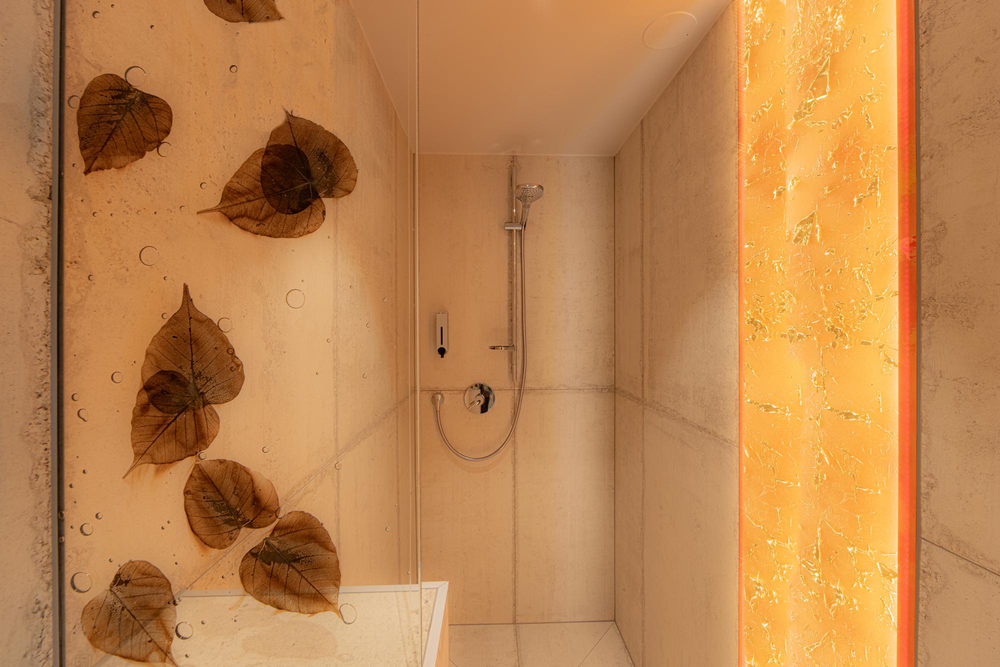 Das Appartement Clematis beeindruckt mit seiner tiefen, satten lila Farbgebung, inspiriert von der Clematis, die in den Wäldern um die Fichtenstämme wächst. Es bietet Platz für bis zu 4 Personen und verfügt über 2 Schlafzimmer, 2 Bäder mit Dusche und WC sowie eine gemütliche Wohnküche. In einem der Bäder sorgt ein Zirbenholz-Infrarotstuhl für zusätzliche Entspannung.