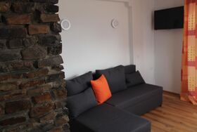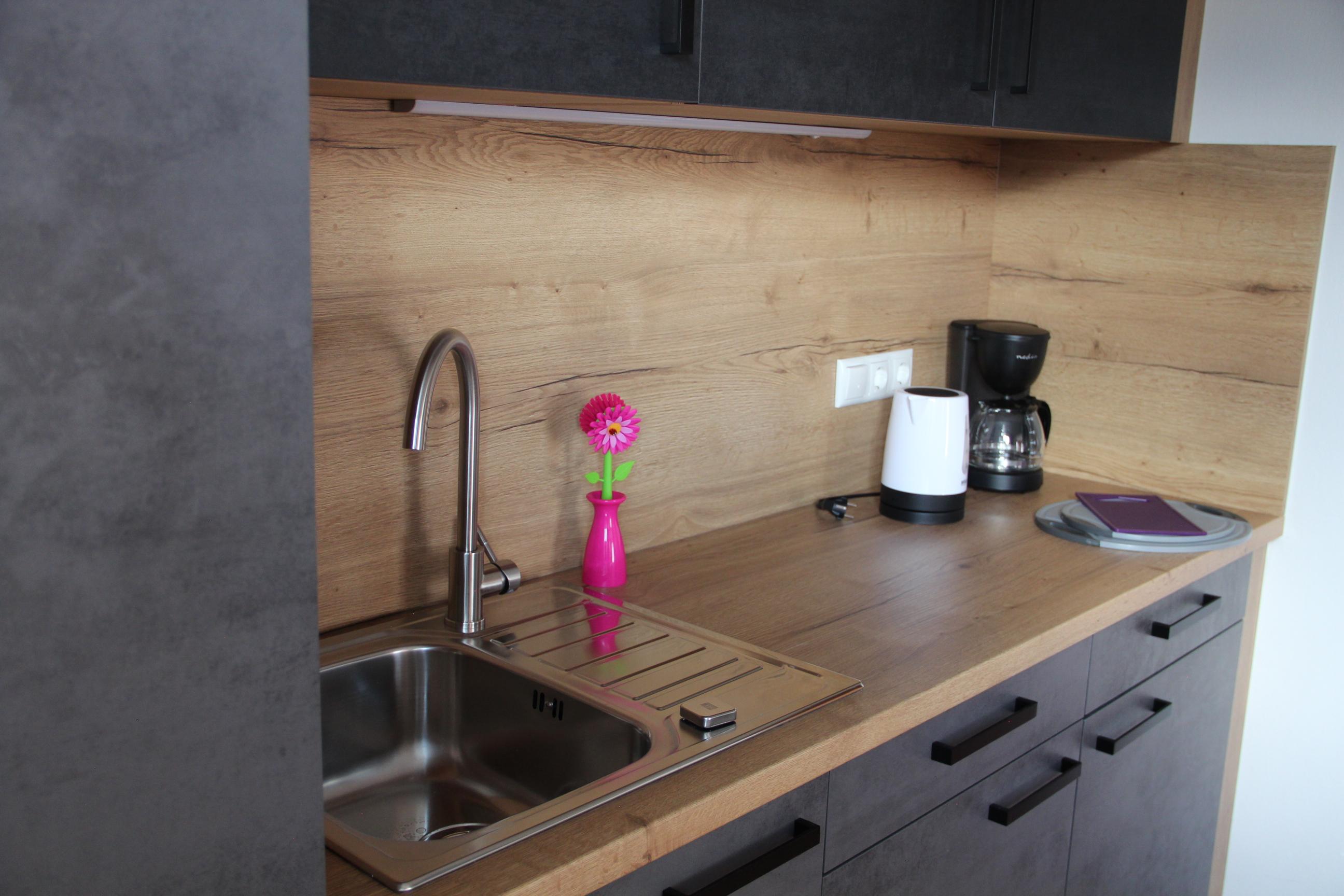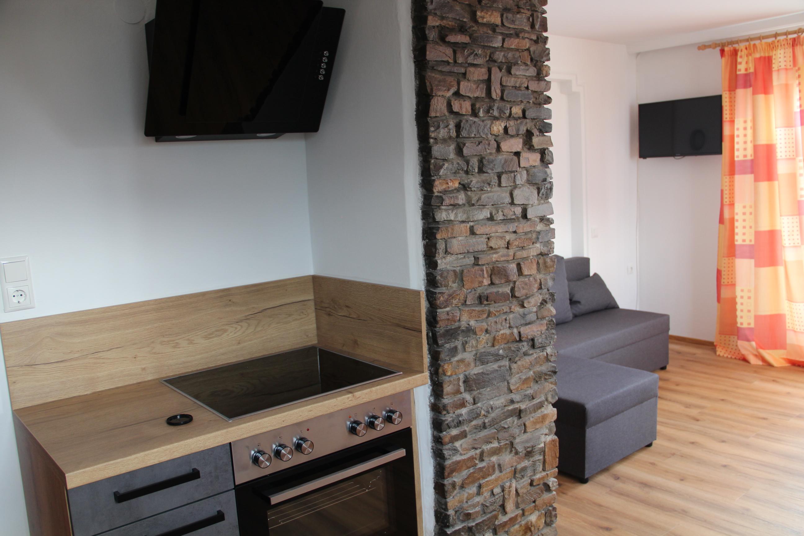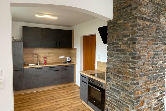 Die ca. 75m² große Ferienwohnung befindet ist im Erdgeschoss mit direktem Zugang zum Garten. Die Wohnung verfügt über zwei Doppelzimmer, eine Wohnküche, Bad mit Dusche und separatem WC.