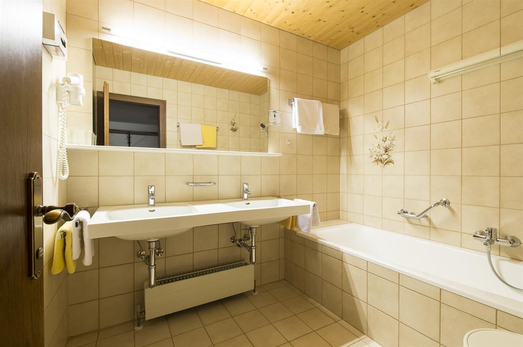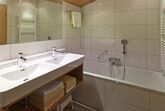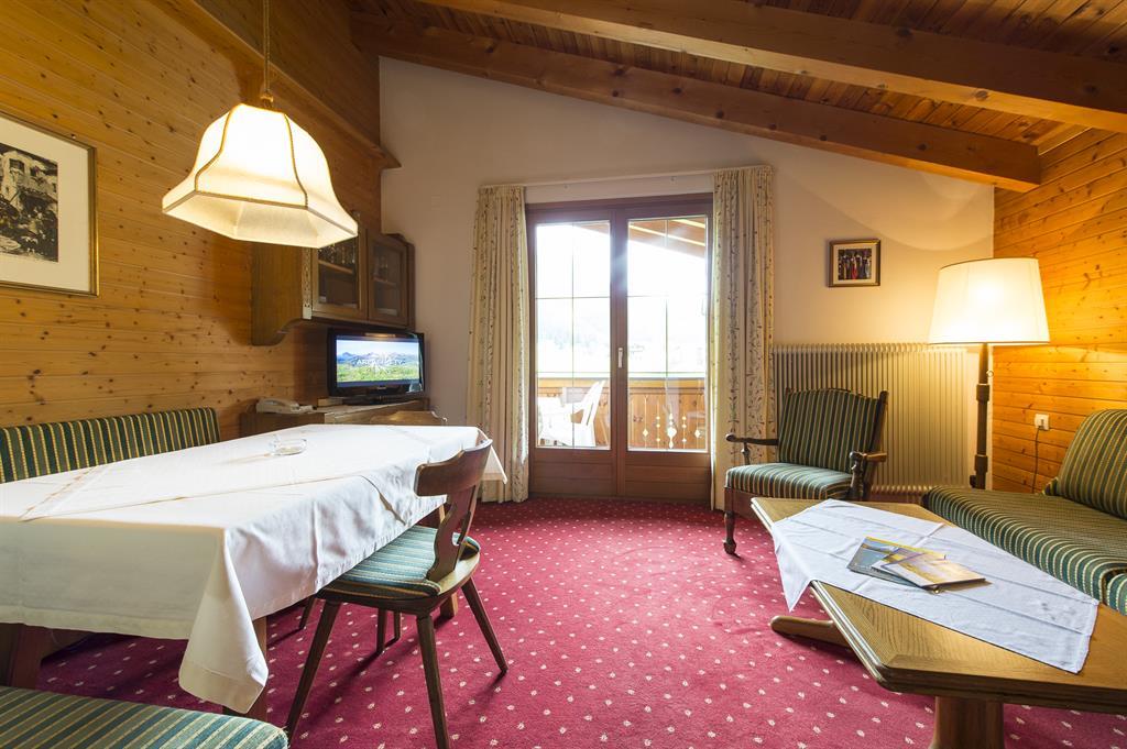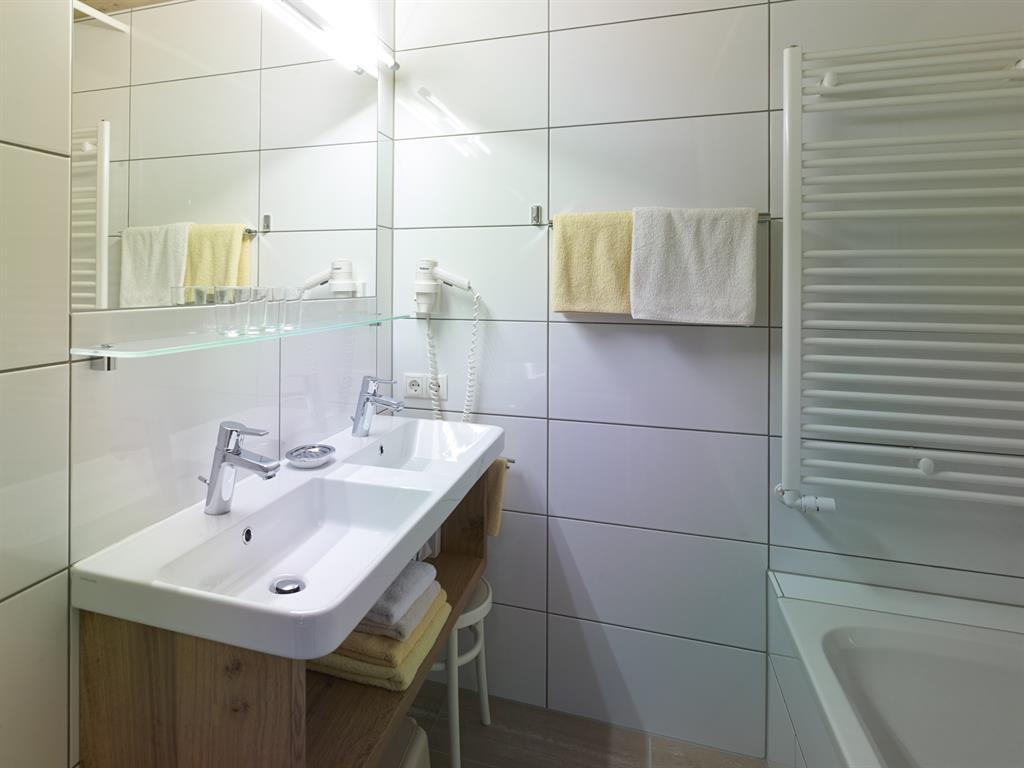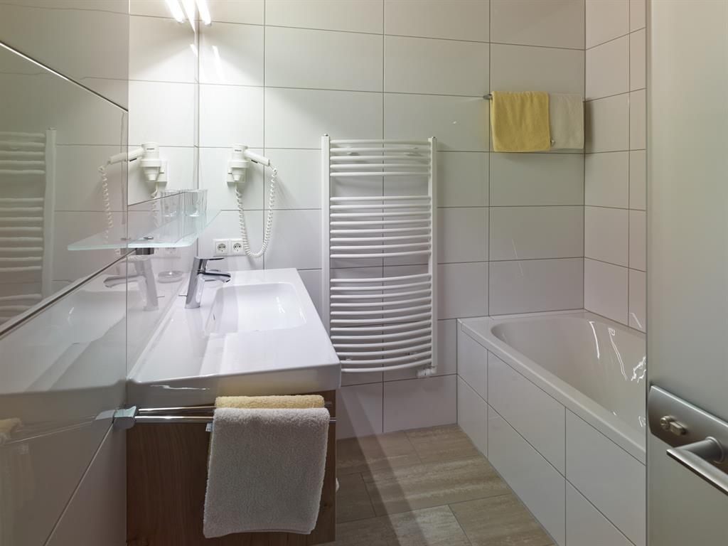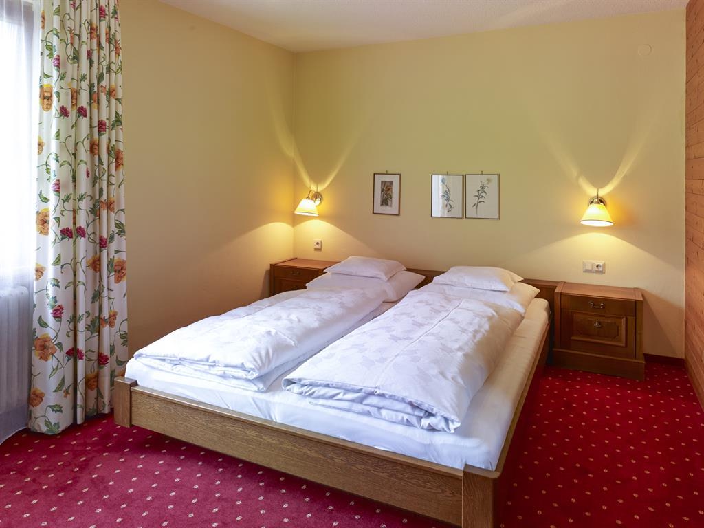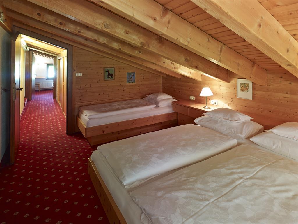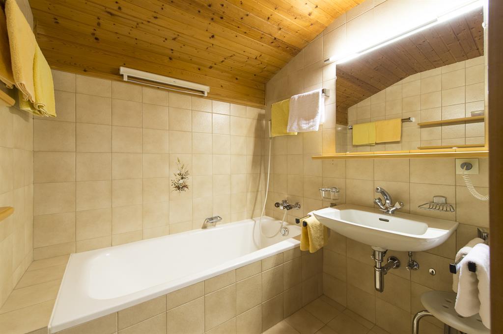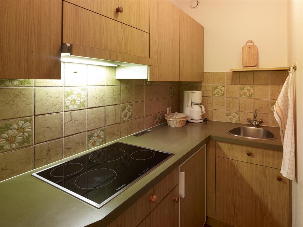 Appartement „Alpenrose“ (Typ 5), im Haus Holiday, 95 m². Komfort-Appartement mit 3 Schlafzimmern: 2 Dreibettschlafzimmer (jeweils mit 1 Doppelbett und einem Einzelbett) mit Dachschräge (1,70 m Höhe).und 1 Doppelschlafzimmer. Zwei Bäder, einmal mit Dusche und einmal mit Badewanne, Doppelwaschbecken, 2 getrennte WCs. Ein großer Wohnraum mit Esstisch und gemütlicher ausziehbarer Couch. Integrierte Küche im Wohnbereich mit E-Herd (ohne Backofen), Geschirrspülmaschine, Toaster, Kaffeefilterkanne und mehr). Großer Süd-Balkon. Geeignet für 6 Erwachsene (und zwei Kleinkinder bis 6 Jahre).