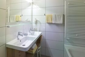 Appartement „Edelweiß“ (Typ 3), im Haus Holiday, 68 m². Komfort-Appartement mit einem Doppelschlafzimmer und einem kleineren Schlafzimmer mit 2 getrennten Betten. Balkon mit dem besten Ausblick, da die Wohnung unter dem Dach ist. Küche mit E-Herd ohne Backofen, Filterkafeekanne, Toaster, Geschirrspüler und Wohnbereich mit Esstisch und ausziehbarer Couch. Bad oder Dusche, Doppelwaschbecken. Getrenntes WC. Geräumiger, gemütlicher Wohnraum mit Couch, Esstisch und Fernseher. Für vier Erwachsene (und zwei Kinder).