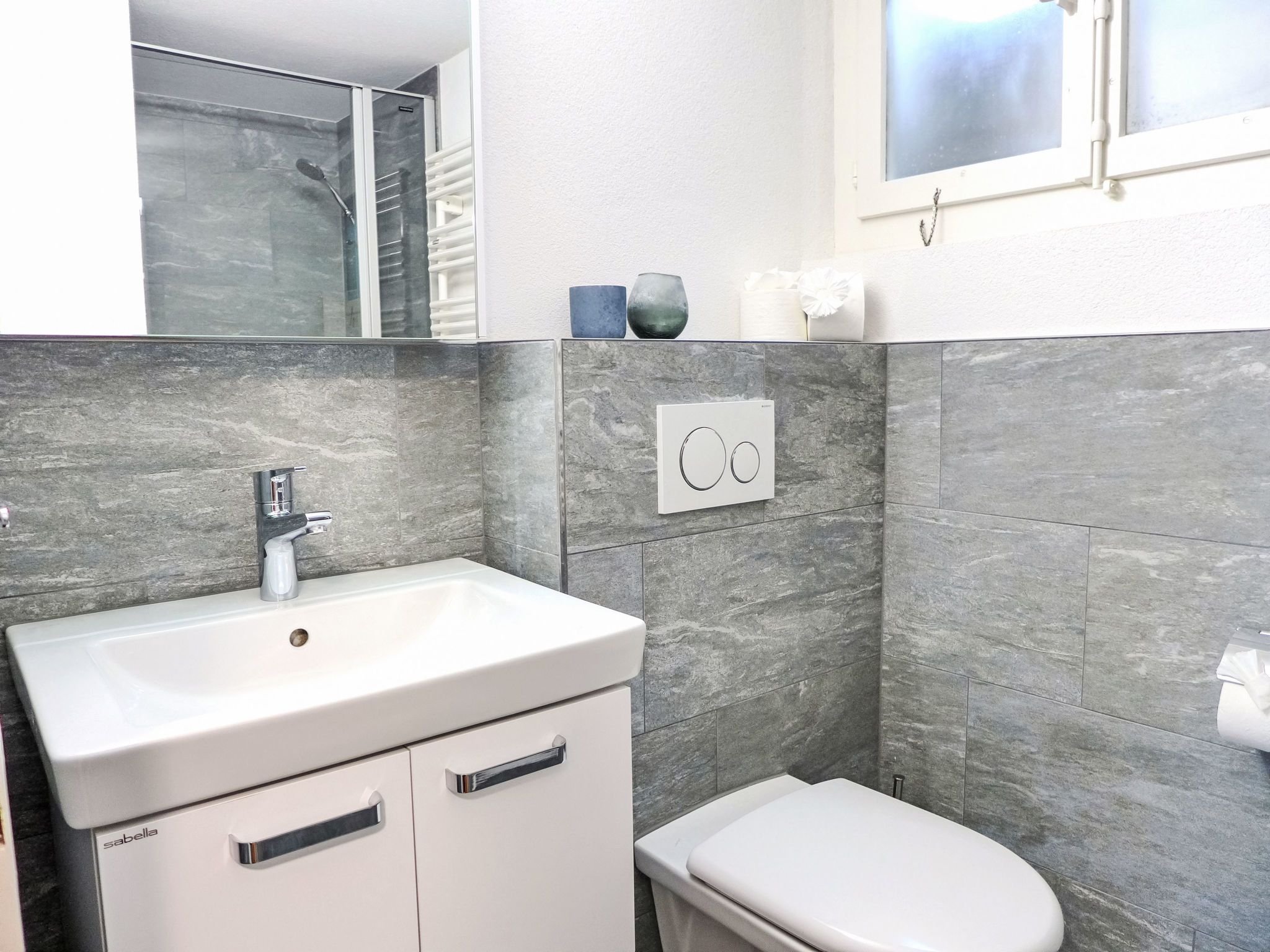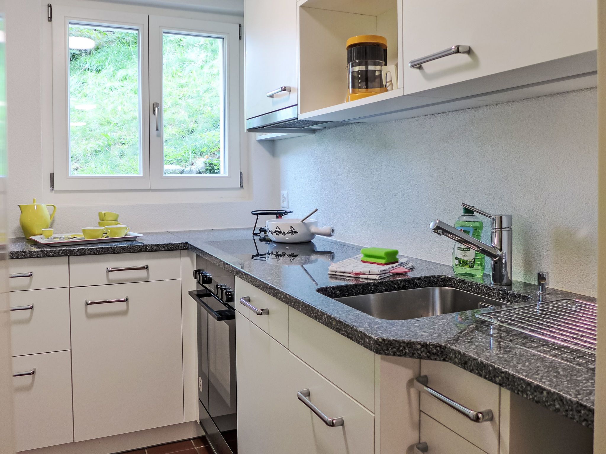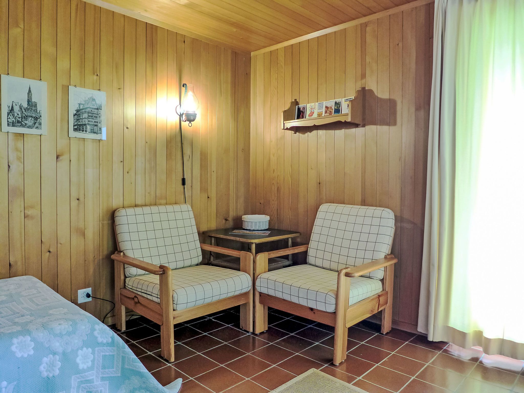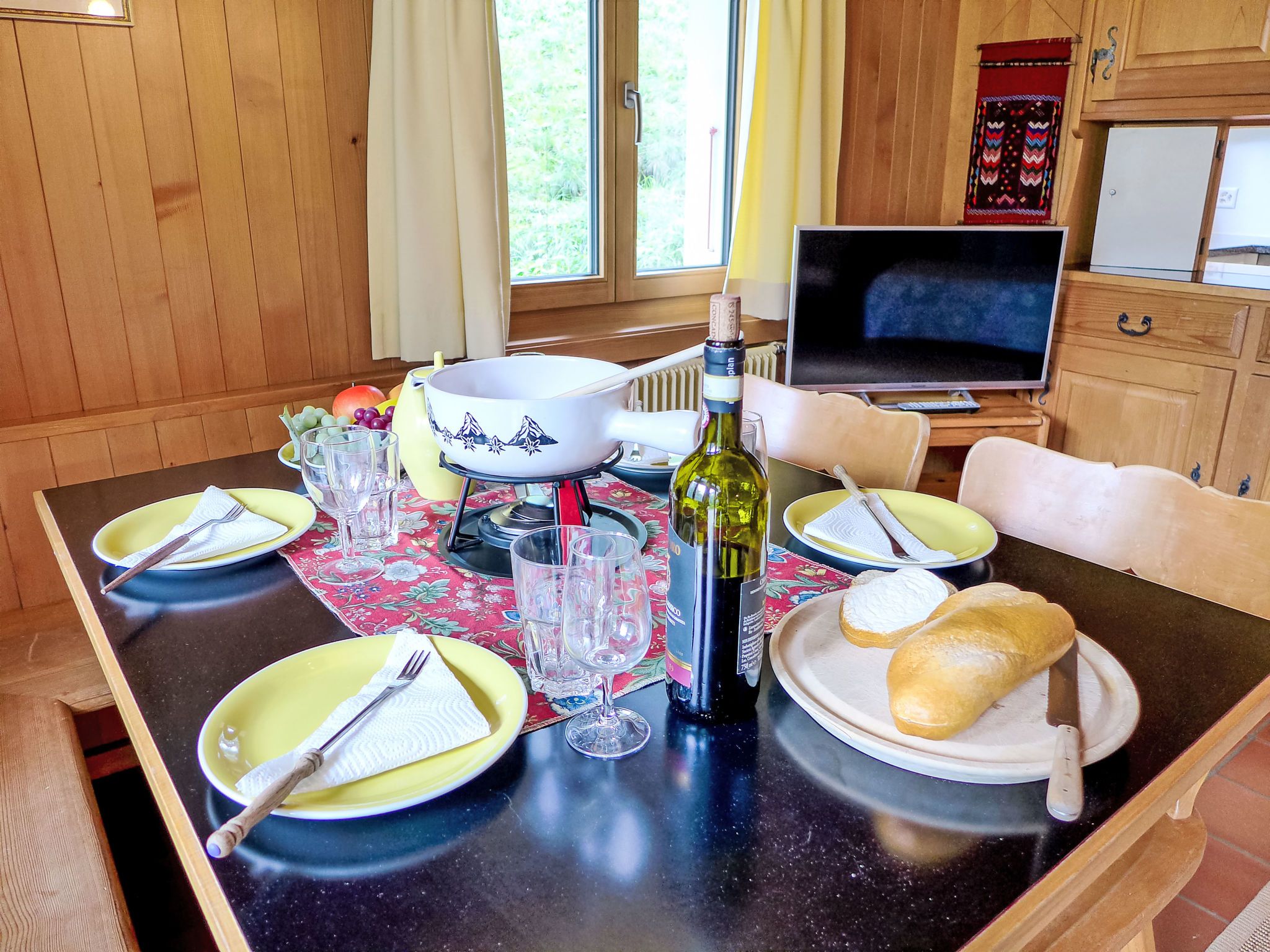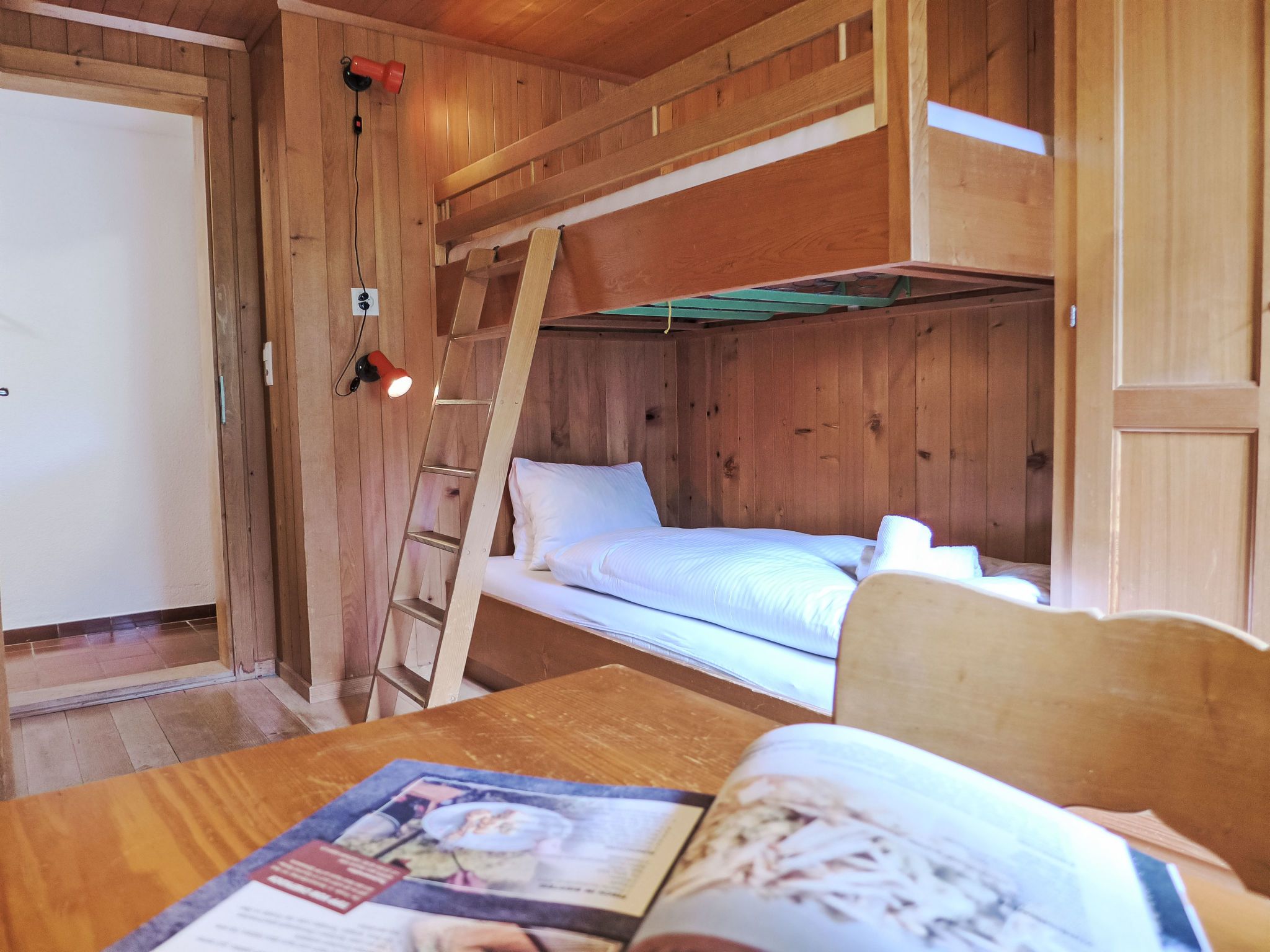 3-Zimmer-Wohnung 50 m2, im Erdgeschoss, Südlage. Objekt geeignet für 2 Erwachsene + 2 Kinder. Zweckmässig und mit viel Holz eingerichtet: Wohn-/Esszimmer mit Essecke, Kabel-TV und Flachbildschirm. Ausgang zur Terrasse. 1 Zimmer mit 2 Betten (90 cm, Länge 200 cm). 1 kleines Kinderzimmer mit 1 x 2 Etagenbetten (90 cm, Länge 200 cm). Kleine Küche (Backofen, Geschirrspüler, 4 Glaskeramikplatten, Toaster, Wasserkocher, Tiefkühler, elektrische Kaffeemaschine, Fondue Set (Chinoise, Käse)). Dusche/WC. Holzdielenboden. Terrasse, Südlage. Terrassenmöbel. Herrliche Sicht auf die Berge, das Tal und die Ortschaft. Zur Verfügung: Babybett bis 2 Jahre (extra), Haartrockner. Internet (Wireless LAN, gratis). Parkplatz (1 Auto) in 50 m. Bitte beachten: geeignet für Familien. Nichtraucher-Unterkunft. Feuerlöscher.