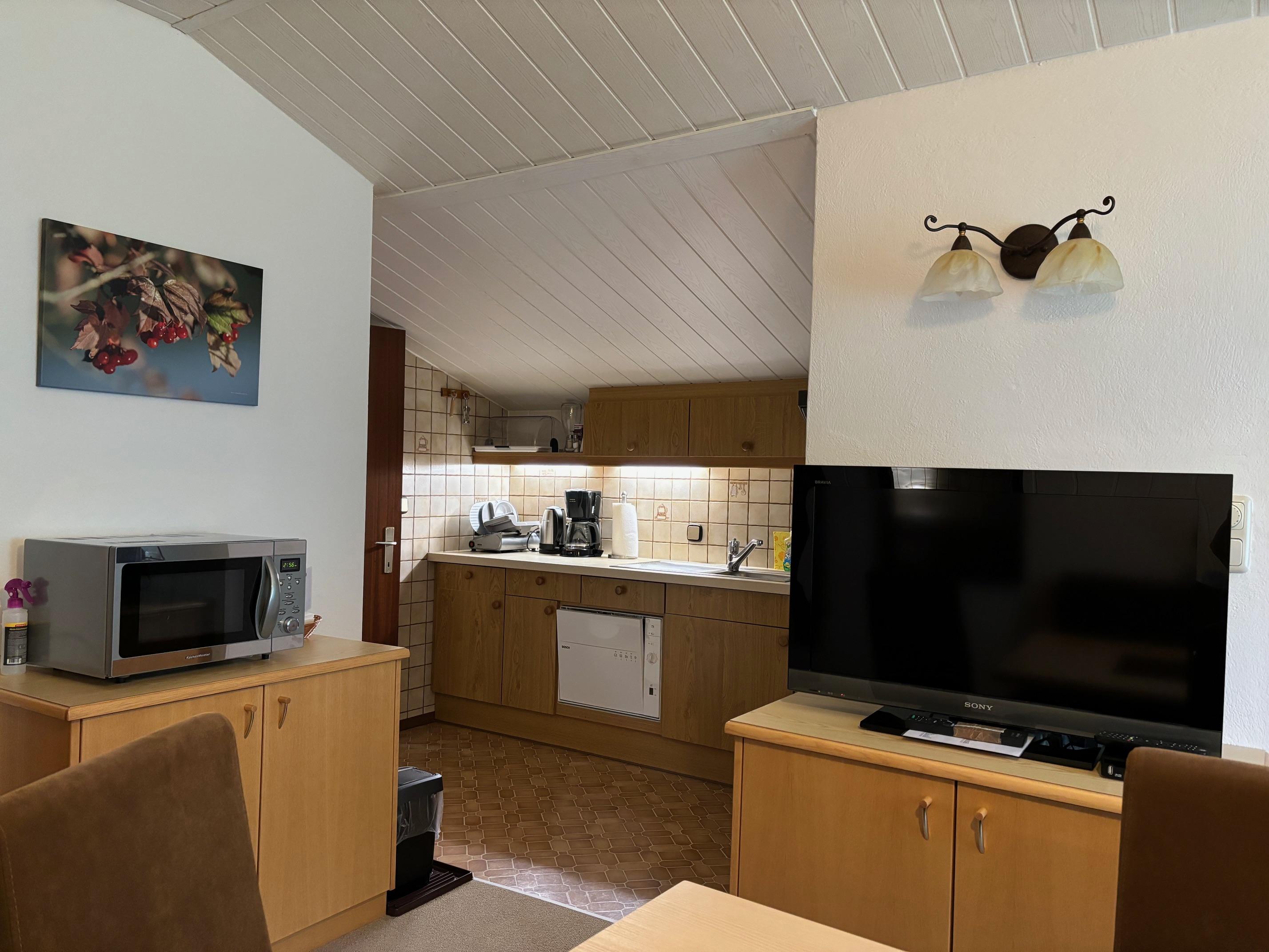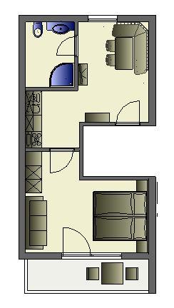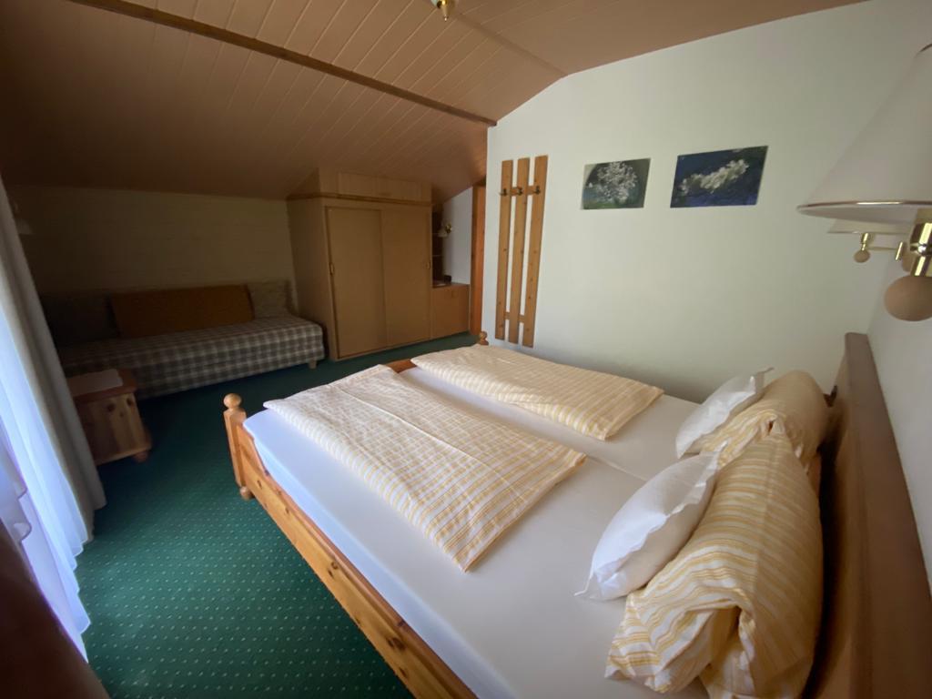 Großzügiges Appartement mit separater voll ausgestatteter Küche und Wohn-/Essbereich. Das Badezimmer ist ausgestattet mit Dusche und WC. Diese Ferienwohnung bietet Platz für zwei bis drei Personen, wobei bei Bedarf ein zusätzliches Zimmer im zweiten Stock mit extra WC gebucht werden kann. Es steht Ihnen ein möblierter Balkon, sowie Sat-TV und W-LAN zur Verfügung.