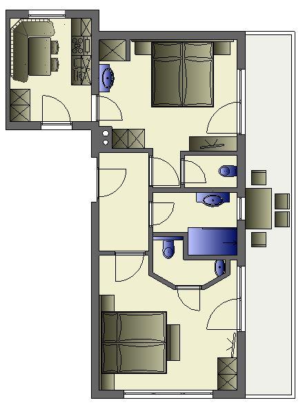 Dieses Appartement ist ausgestattet mit separater voll ausgestatteter Küche mit Essbereich, neu renoviertem Badezimmer mit Dusche und zwei separaten Toiletten, sowie zwei Schlafzimmern, womit Platz für bis zu vier Personen ist. Über den großen möblierten Balkon haben Sie direkten Zutritt zum Garten. Neben kostenlosem W-LAN Zugang verfügen Sie außerdem über Sat-TV.