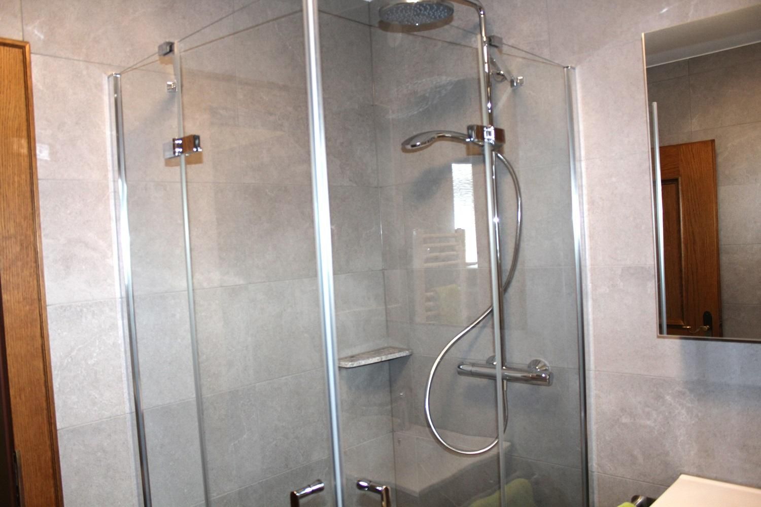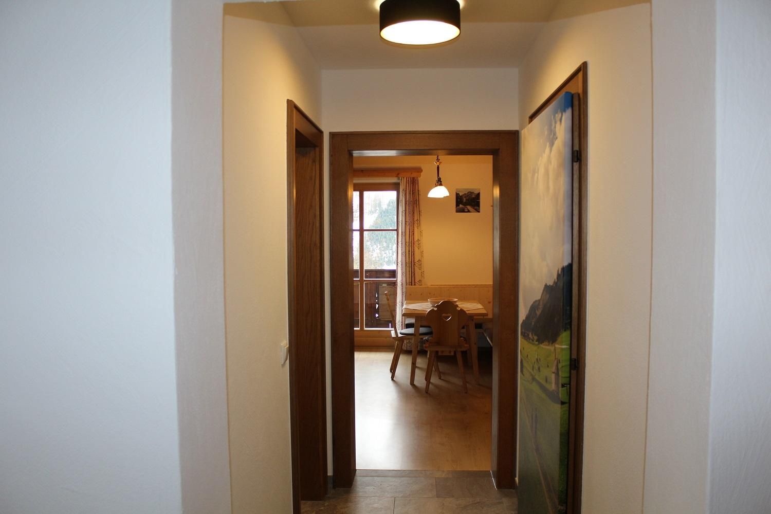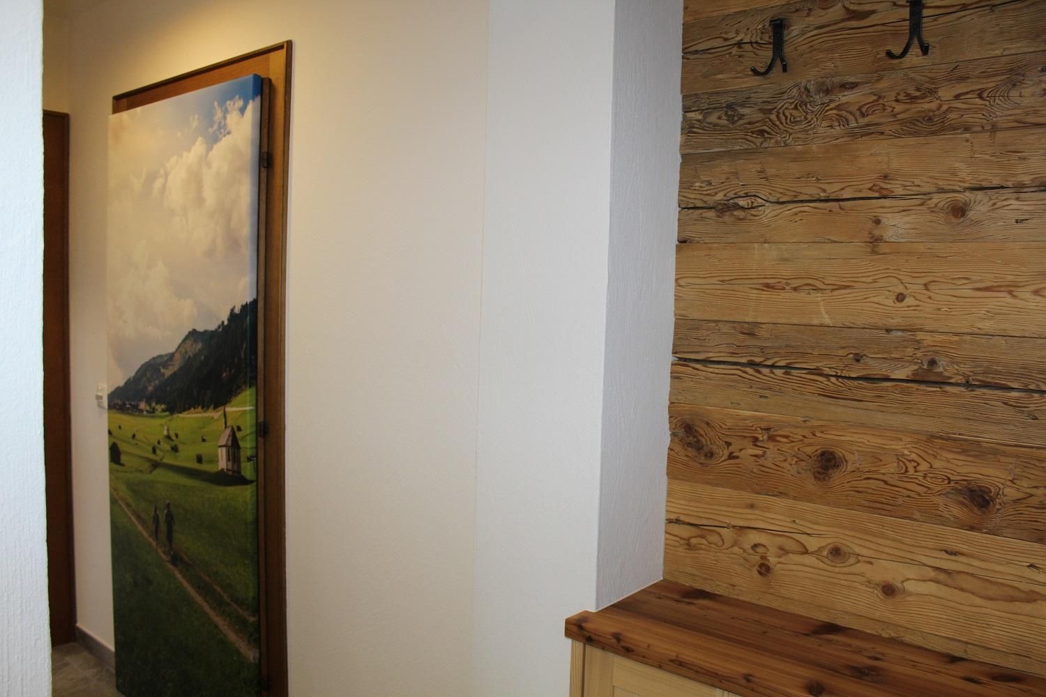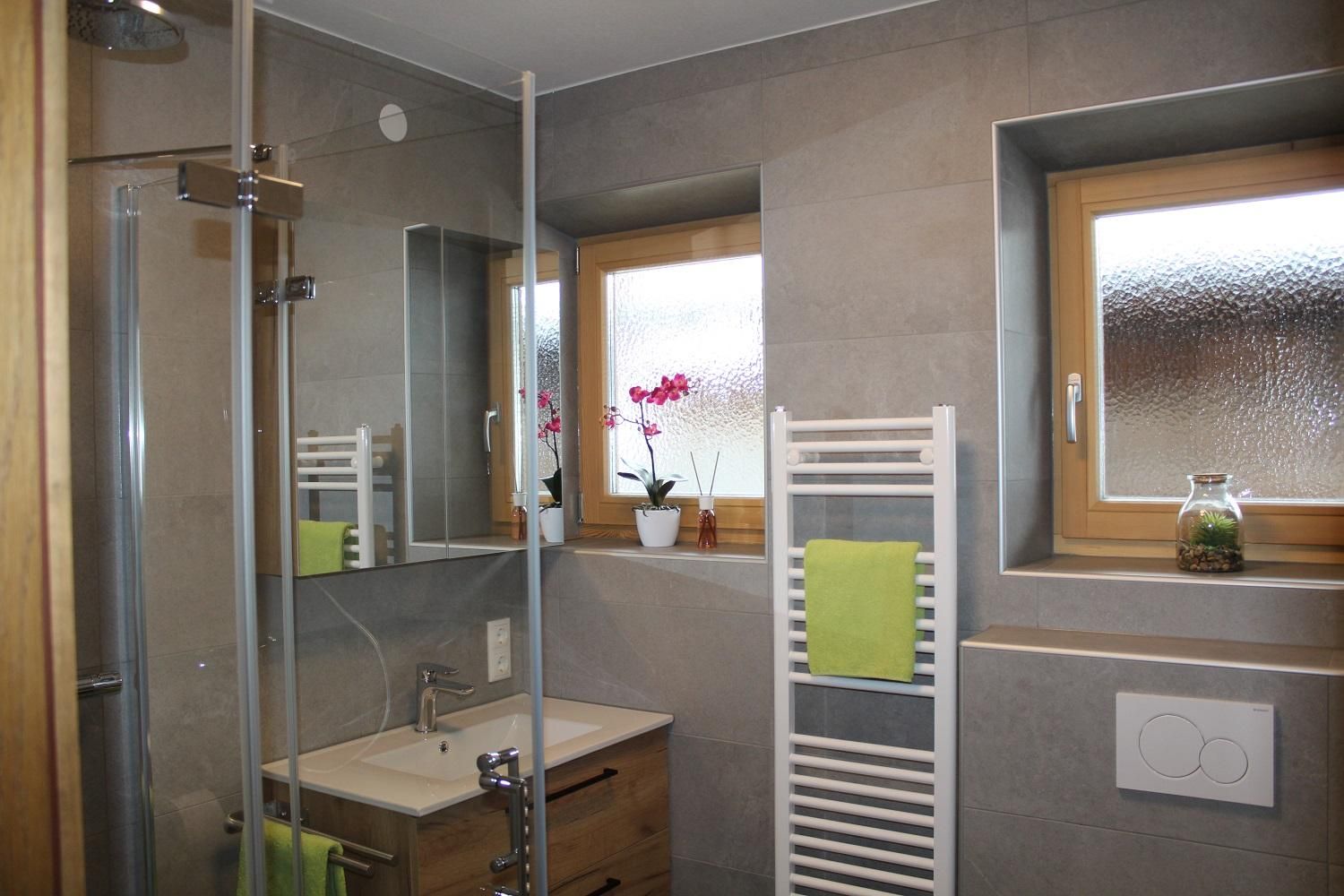 Unsere gemütliche Ferienwohnung für 2 bis 4 Personen besteht aus: Wohnküche mit großer Sitzecke und ausziehbarer Doppelcouch, Schlafzimmer mit 2 Betten, Bad mit WC und Dusche und Balkon (Südseite).