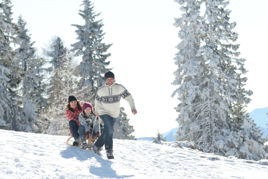 Flaumigen Schnee spüren, einen Schneemann bauen, in verschneiter Winterlandschaft spazieren oder rodeln auf der eigenen Rodelstrecke ... Bobs und Rodeln stellen wir selbstverständlich gratis zur Verfügung. Schi- und Snowboardvergnügen am sonnenreichsten Berg Kärntens, der Gerlitzen.
