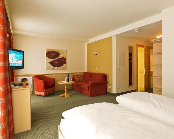 Das Hallenbad und der großzügige Wellnessbereich mit Aromadampfbad, Finnischer Sauna, Sanarium, Infrarotkabine, Soledampfbad und Wärmeliegen runden das Wohlfühl-Angebot ab. Für die Kleinen gibt es ein Kinderspielzimmer zum Herumtollen und für die etwas größeren einen Jugendraum.
