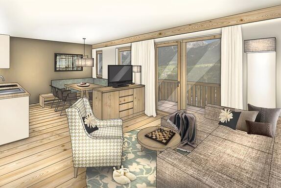 App. “König Serles” - NEU, mit 2 Schlafzimmer (1 Doppelbett-, 1 Dreibettzimmer), 1 Bad mit DU und Doppelwaschbecken, WC extra, großes Wohnzimmer mit top ausgestatteter Kitchenette, 3 SAT-TV, großzügiger Balkon; ca. 62 m² ... bis zu 6 Personen
