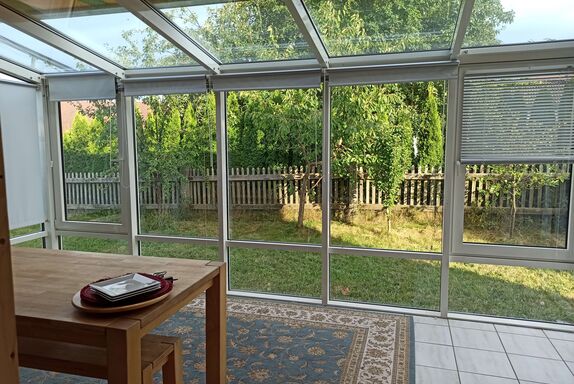 Auf ca. 70 m² erwartet Sie eine geräumige Wohnküche, ein Wohnzimmer, ein Bad mit Badewanne, Dusche und Waschbecken und separates WC mit Waschbecken. Außerdem verfügen Sie über 1 Schlafzimmer mit einem Doppelbett (1,80 x 2,00), ein Wohnzimmer mit Zugang zum Wintergarten. Sie haben Internet-Zugang und W-Lan inclusive. Sie haben die Möglichkeit im Freien auf einem Stellplatz vor dem Haus zur parken und einen 24 h Zugang per Pin zum Haus.