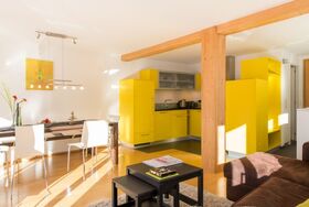 Die gut ausgestattete, helle und moderne Küche ist ideal für die Zubereitung von Familien- Mahlzeiten inklusive Kaffeemaschine, Fondue und Raclette Set. Essen Sie an der frischen Luft auf dem Balkon oder machen Sie es sich drinnen am Esstisch gemütlich. Der Wohnraum verfügt über ein großes bequemes Sofa, TV und Couchtisch ideal zum entspannen nach einem langen Tag.