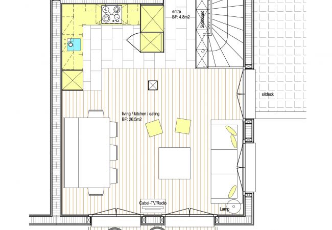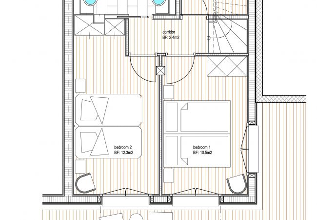 • zweites Schlafzimmer mit zwei Einzelbetten (2x 90x200cm) sowie ein ausziehbares Bett (1 x 90x200cm)