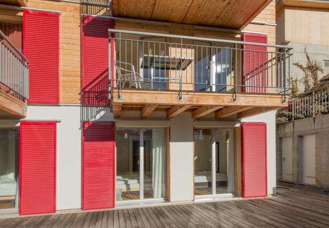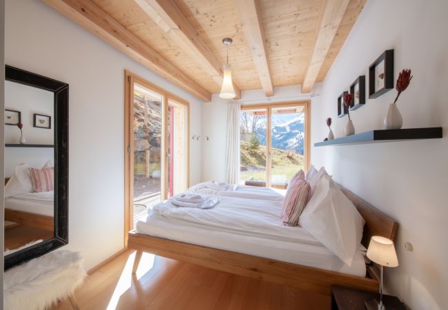 Durch Ihren eigenen privaten Eingang gelangen Sie in den offenen Wohn-Ess-Küchenbereich mit direktem Zugang auf den Balkon mit Blick auf die Jungfrau, Silberhorn und die umliegenden Berge. Über die Treppe nach unten erreichen Sie die 2 Schlafzimmer, Familenbad und den grosszügigen Waschraum.