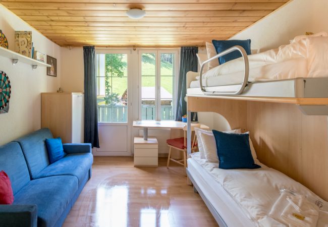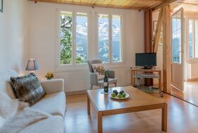 Chalet Hunnenfluh ist ein idyllischer alpiner Rückzugsort! Das stilvolle Wengen Apartment im 2.Stock mit 2 Schlafzimmern, 1 Badezimmer und 4 Balkonen bietet eine der besten Aussichten in Wengen! Weit weg von der Hektik des geschäftigen Dorfzentrums Wengen wird der Spaziergang mit einem wirklich einzigartigen Erlebnis belohnt, das zweifellos einen der schönsten Ausblicke auf das Lauterbrunnental, das Jungfraujoch und die umliegenden Berge bietet. Hier kannst du die Natur ungestört geniessen.