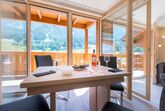• Offene Wohn-Ess-Küche mit großen Panoramafenstern mit Blick auf den Männlichen und den Wengener Anfängerhügel; gut ausgestattete Küche