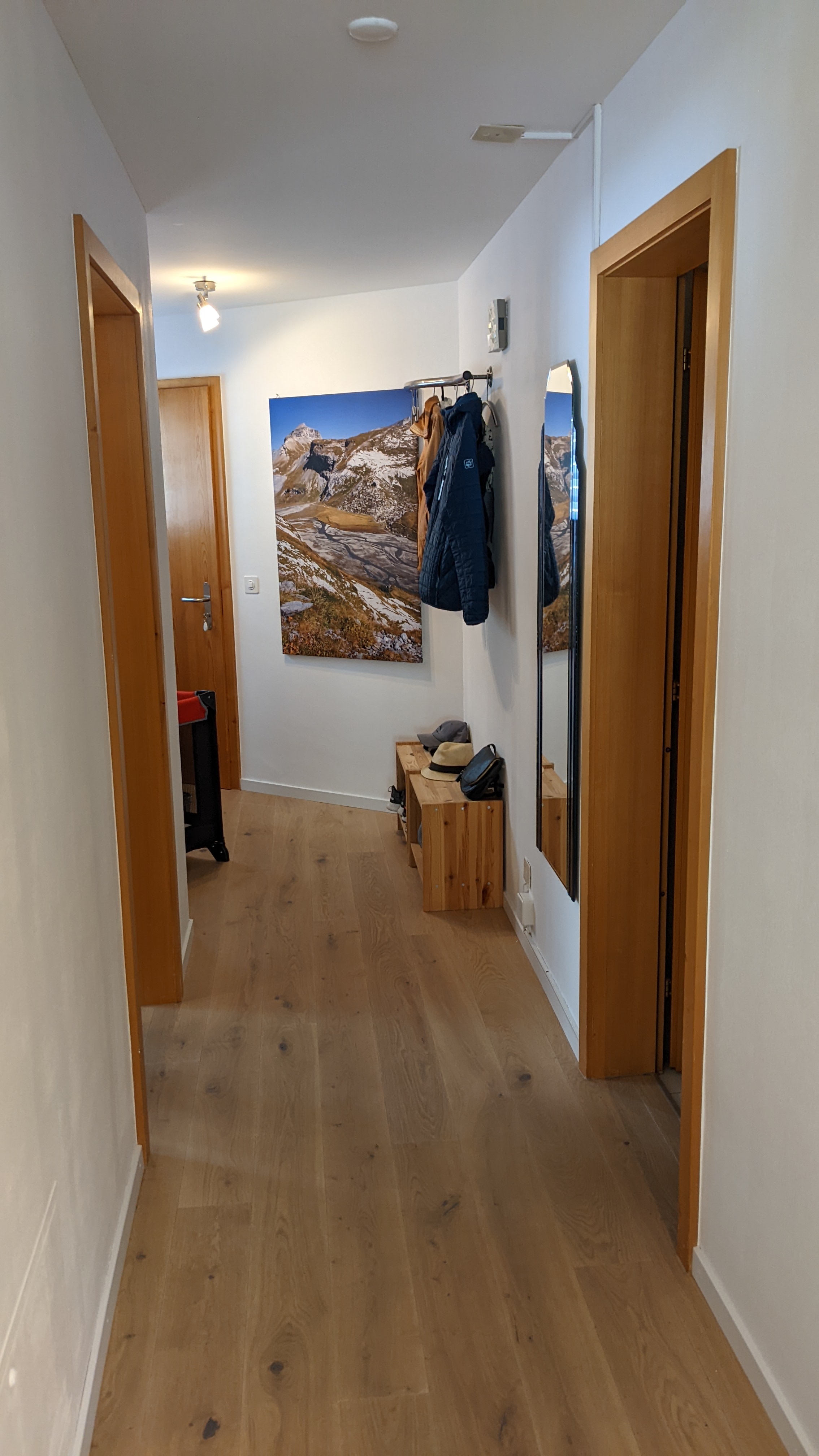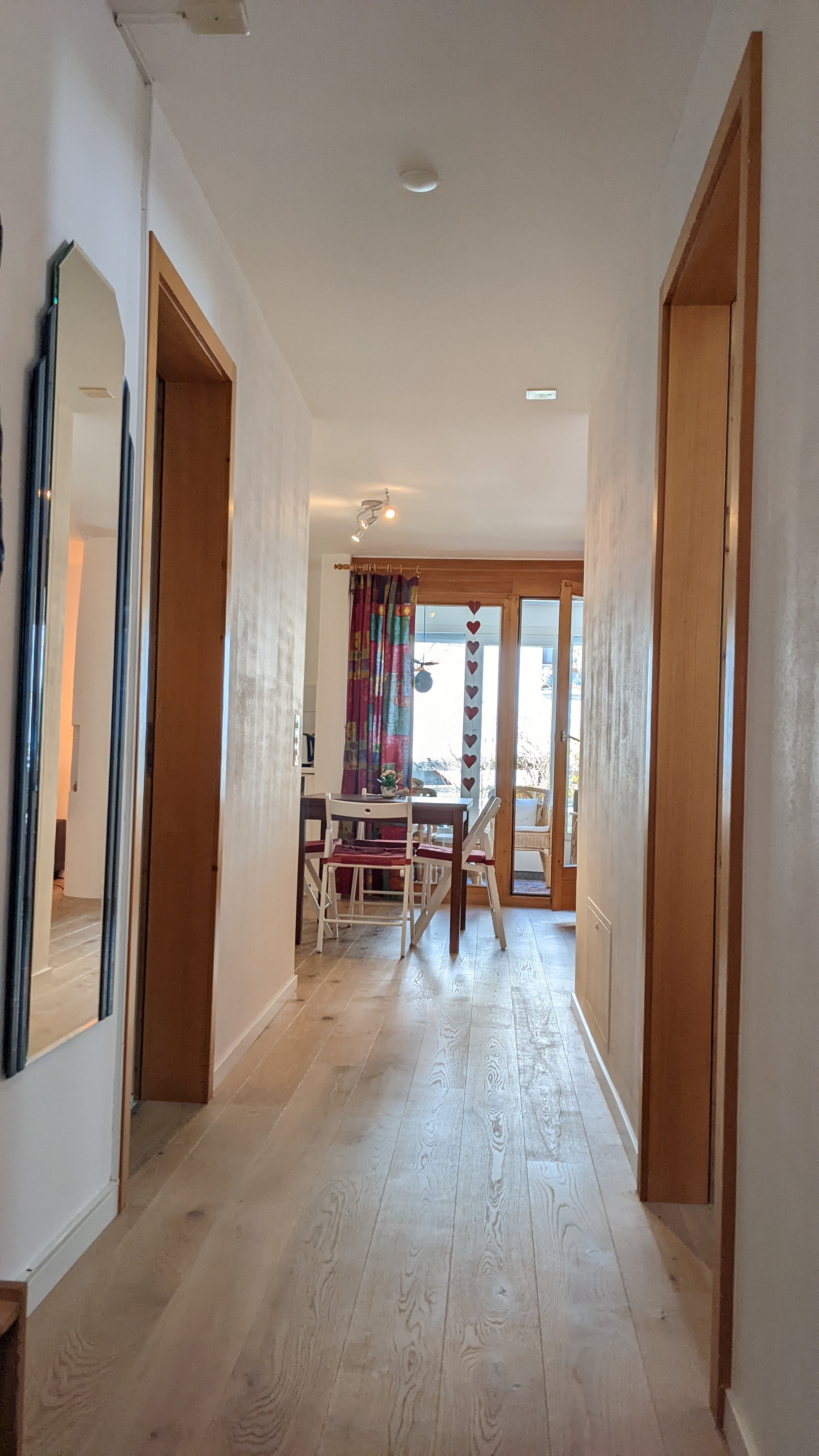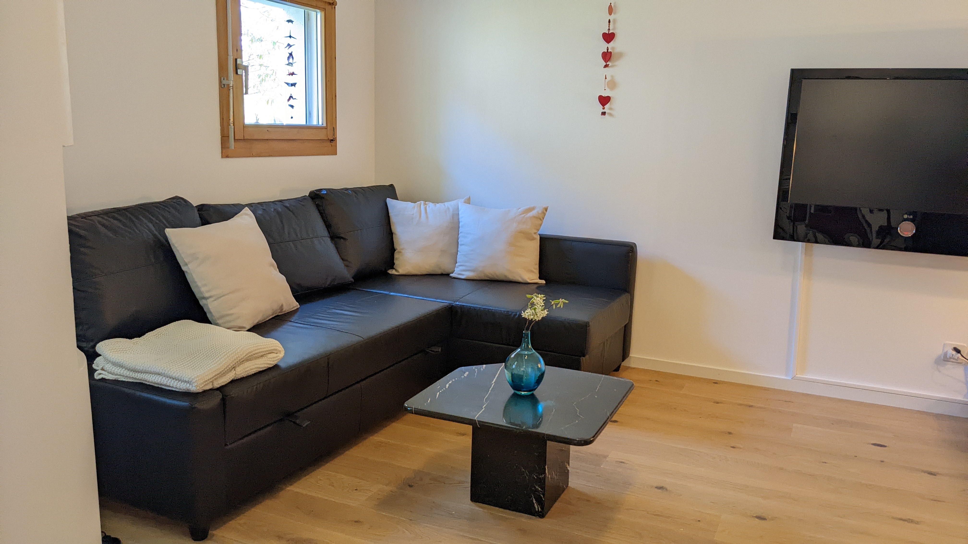 Schöne 2.5-Zimmerwohnung (53m²) im sonnigen Sagogn. Die Wohnung ist gemütlich und geschmackvoll eingerichtet. Der Fussboden aus Eichenparkett. Küche mit kleinem Kühlschrank inkl. Tiefkühlfach, Kochfeld mit vier Platten, Spülmaschine, Backofen, Wasserkocher, Toaster und Kaffeemaschine von Nespresso. Esstisch mit 4 Stühlen. Gemütliches Wohnzimmer mit Sofa (ausziehbar für 2 Personen, 140 cm), grosser Fernseher mit Netflix, Spiele und Spielzeug für Kinder. Wintergarten mit Blick in den Garten (beheizbar mit Elektroöfeli) und gemütlichen Korbstühlen, grosse Bücherkiste. Schlafzimmer mit Doppelbett, Homeoffice-Station (höhenverstellbares Pult, Docking-Station mit Bildschirm, Maus, Tastatur zum Anschliessen eines Laptops). Badezimmer mit Lavabo, Badewanne inkl. Dusche und WC. Zugang zu kleinem Kellerabteil zum Abstellen von Ski etc. Parkplatz in der Tiefgarage. Die Wohnung befindet sich im 1. Stock, Lift ist nicht verfügbar. Haustiere sind nicht gestattet! Bettwäsche, Handtücher, Küchenwäsche und die Endreinigung sind im Endpreis inbegriffen. Haltestelle von Skibus (nach Flims, Laax Falera) und Postauto (nach Flims, Laax, Falera bzw. Richtung Ilanz) 50 Meter von der Wohnung entfernt. Fahrt nach Laax/ Ilanz ca. 10 Minuten. Loipe in Sagogn fussläufig erreichbar (ca. 5 Minuten), Golfplatz Sagogn (18-Loch) mit Auto in 3 Minuten erreichbar. Kleiner Volg im Dorf.