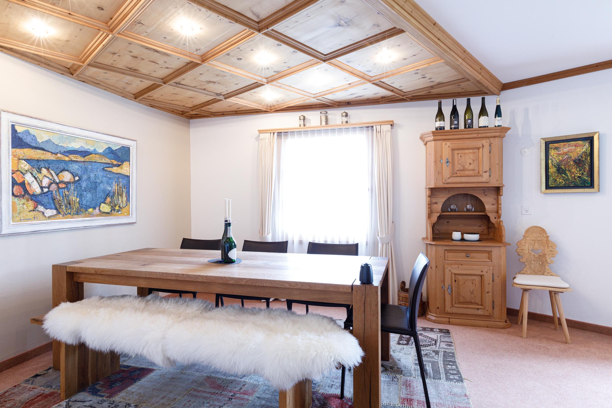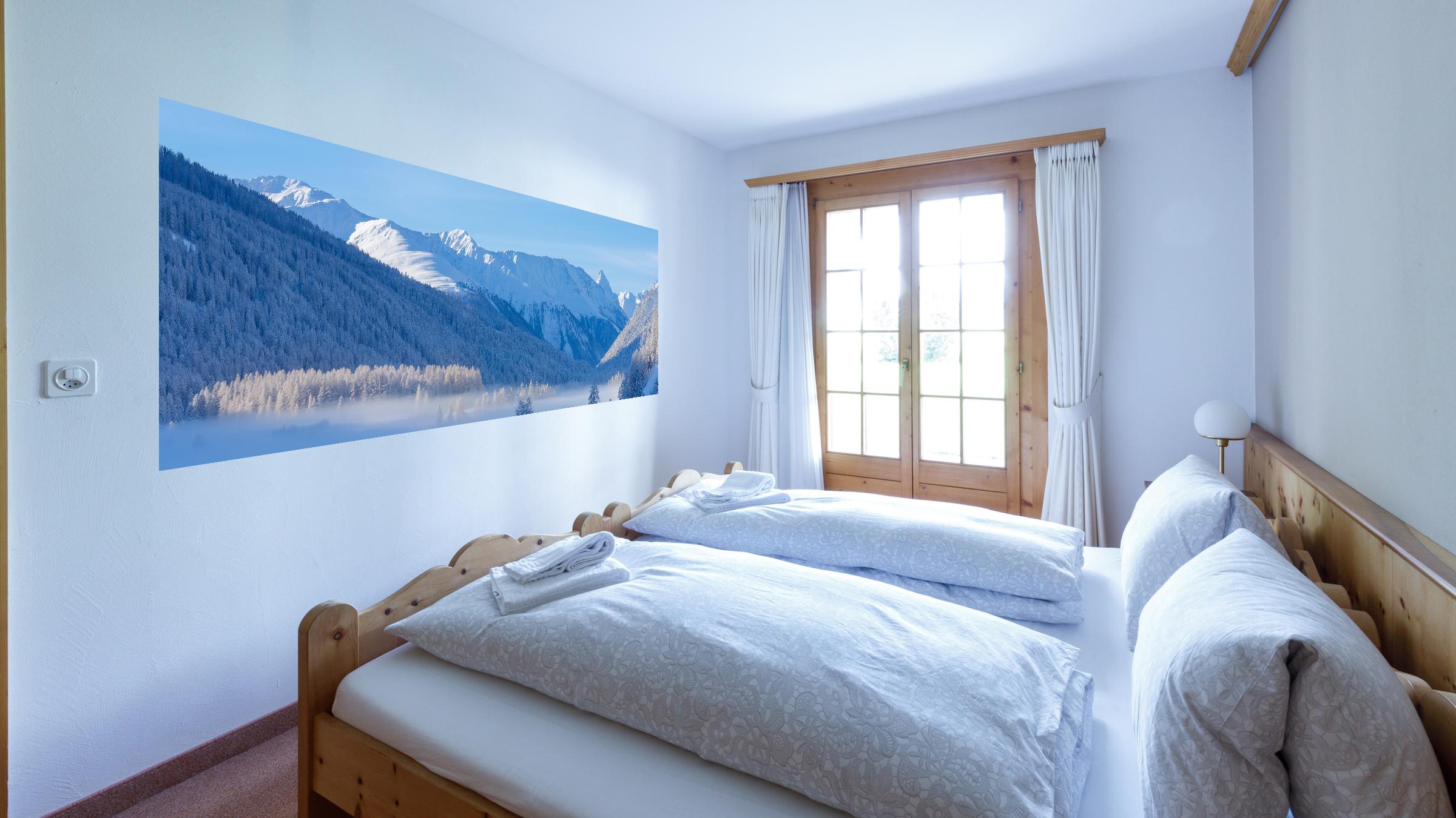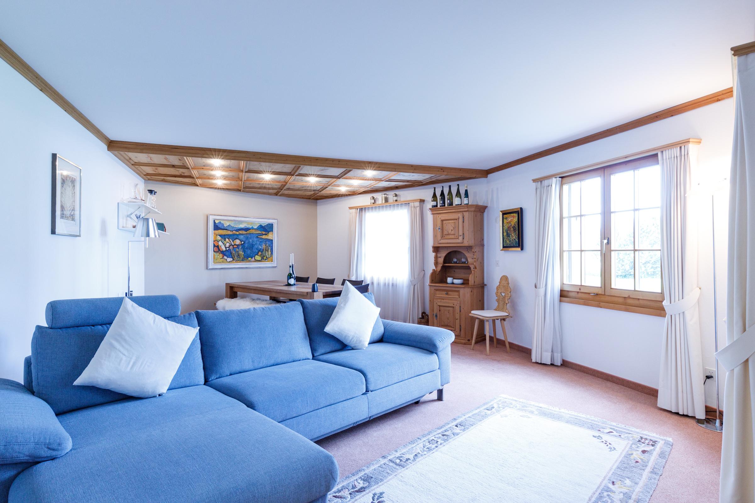 Luxuriöse 2 ½-Zimmerwohnung im EG eines 3 Familienhaus; ideal für max. 2 Erwachsene und 1 Kind (ca. 70m²); 1 Parkplatze im Unterstand; in mitten des Erholungsgebietes Bünda (Langlauf Loipe, Bünda Skilift, Winterwanderweg) in wenigen Schritten erreichbar; zur Mitbenützung: Waschküche, Tumbler, Skiraum; wunderschöne Terrasse; moderne grosszügige offene Küche mit Glaskeramikherd, allen nötigen Küchengeräte, Geschirrspülmaschine, Backofen, Kühlschrank mit Gefrierfach, Wasserkocher, Toaster, Kaffeemaschine; grosszügiges Sofa; Essecke; 1 Schlafzimmer mit 1 Doppelbett (2 Matratzen); Bad/WC; Wohnraum mit Bettsofa für 1 Person, TV, WLAN; auf Anfrage Kinderbett, Baby-Wickelauflage, Kinderhochstuhl; Bettwäsche, Küchentücher, Frotteewäsche, Duvet nordisch; Nichtraucher Wohnung; Haustiere nicht erlaubt; E-Auto Ladestation auf Anfrage gegen Gebühr beim Vermieter möglich.