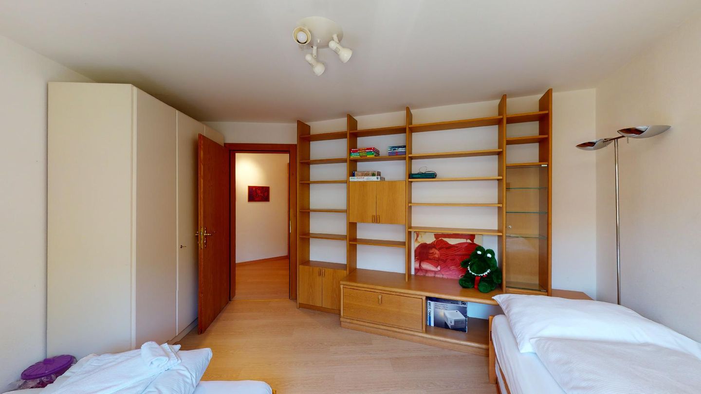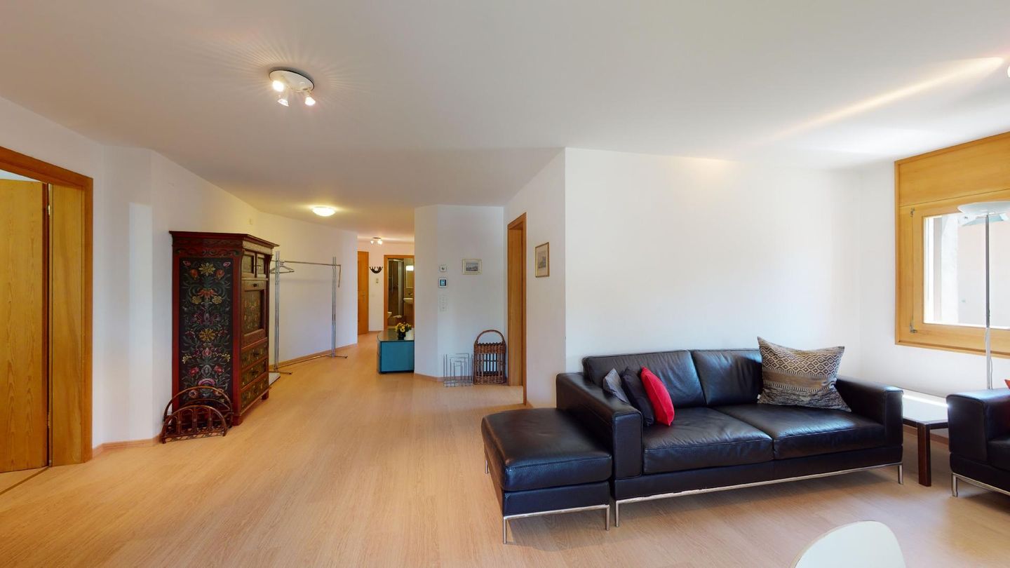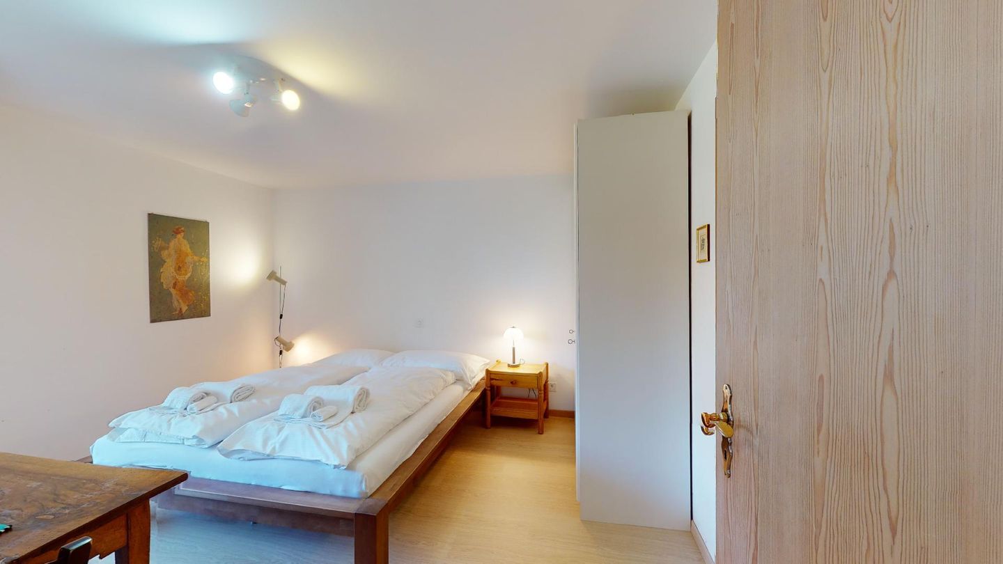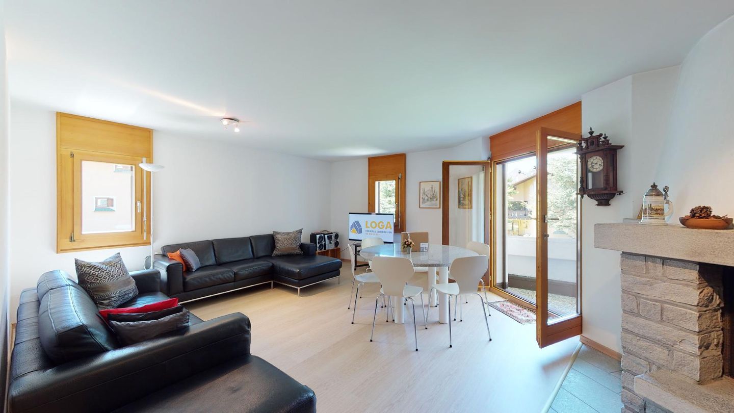 4-Zimmerwohnung im 1. Stock Segliasquartier, ca. 127 m². Eingang mit Garderobe. Ein Doppelzimmer mit Ausgang zum Balkon und Bad/WC/Doppellavabo, 2 separate Schlafzimmer mit je 2 Einzelbetten (+ ein Notklappbett) und Bad (Dusche/Lavabo/WC). Separate Küche mit Fenster, Backofen, Geschirrspüler, Kühlschrank und Tiefkühlabteil. Kaffeemaschine CHICCO D'ORO. Wohn/ Esszimmer mit Balkon (Nachmittagssonne) und Cheminee. Telefon, DAB-Radio mit CD Player und TV. 2 Garagenplätze und 1 Aussenparkplatz. Haustiere sind nicht erlaubt. Absolutes Rauchverbot.