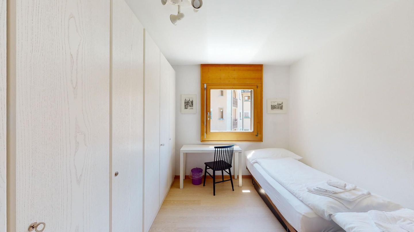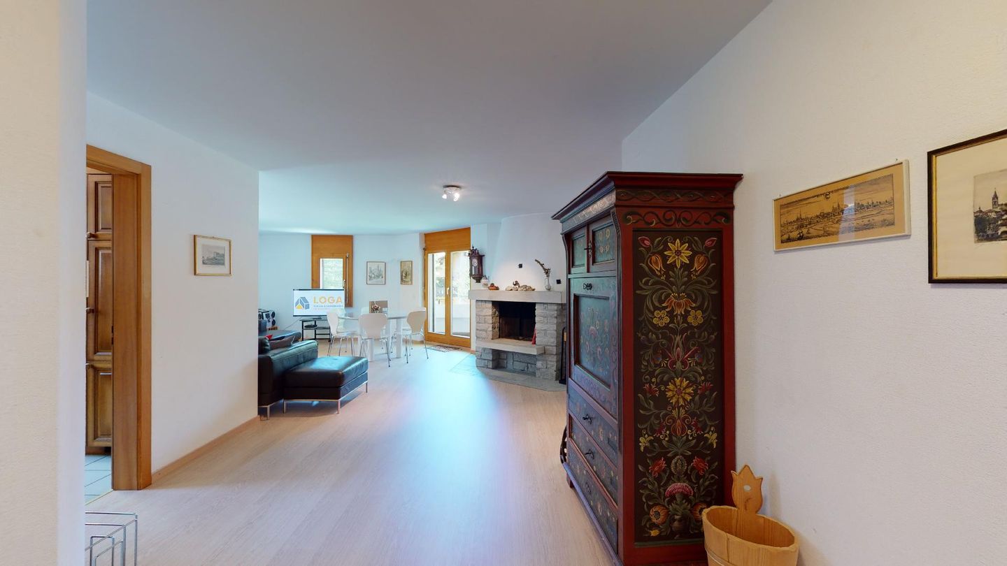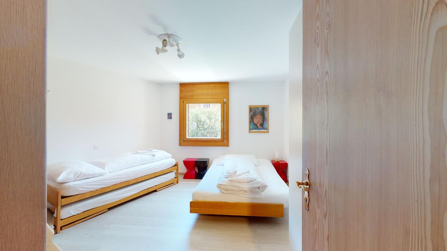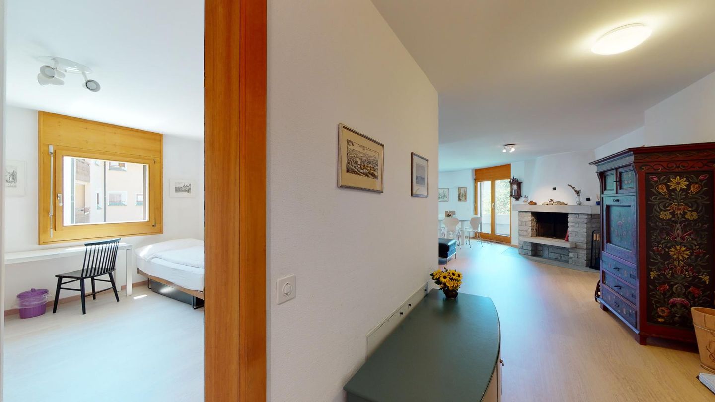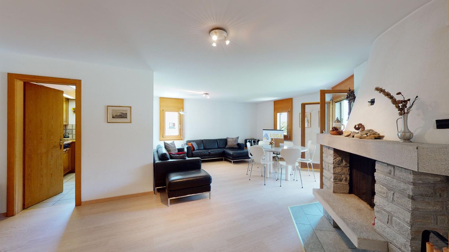 4-Zimmerwohnung im 1. Stock Segliasquartier, ca. 127 m². Eingang mit Garderobe. Ein Doppelzimmer mit Ausgang zum Balkon und Bad/WC/Doppellavabo, 2 separate Schlafzimmer mit je 2 Einzelbetten (+ ein Notklappbett) und Bad (Dusche/Lavabo/WC). Separate Küche mit Fenster, Backofen, Geschirrspüler, Kühlschrank und Tiefkühlabteil. Kaffeemaschine CHICCO D'ORO. Wohn/ Esszimmer mit Balkon (Nachmittagssonne) und Cheminee. Telefon, DAB-Radio mit CD Player und TV. 2 Garagenplätze und 1 Aussenparkplatz. Haustiere sind nicht erlaubt. Absolutes Rauchverbot.