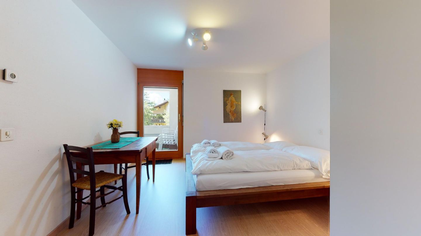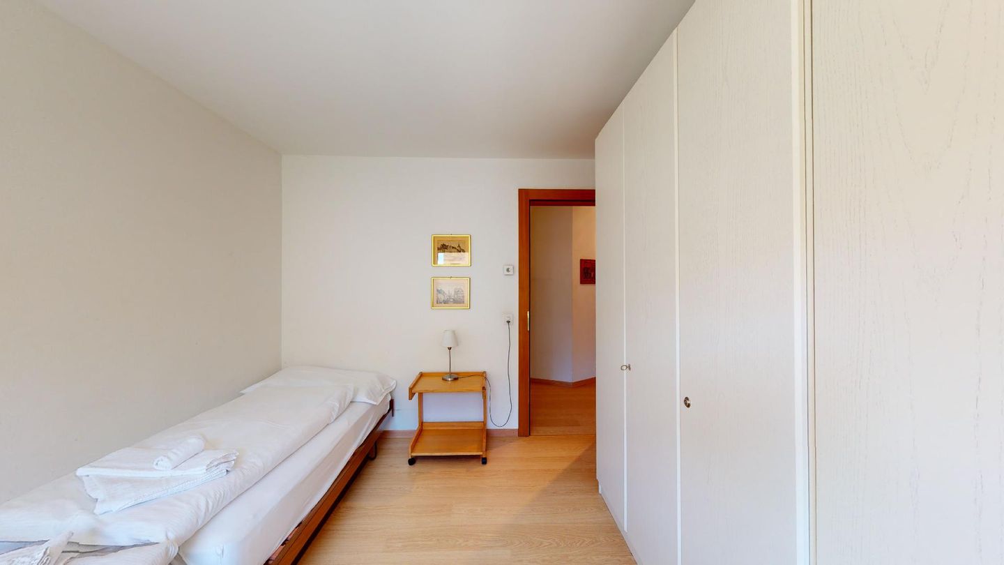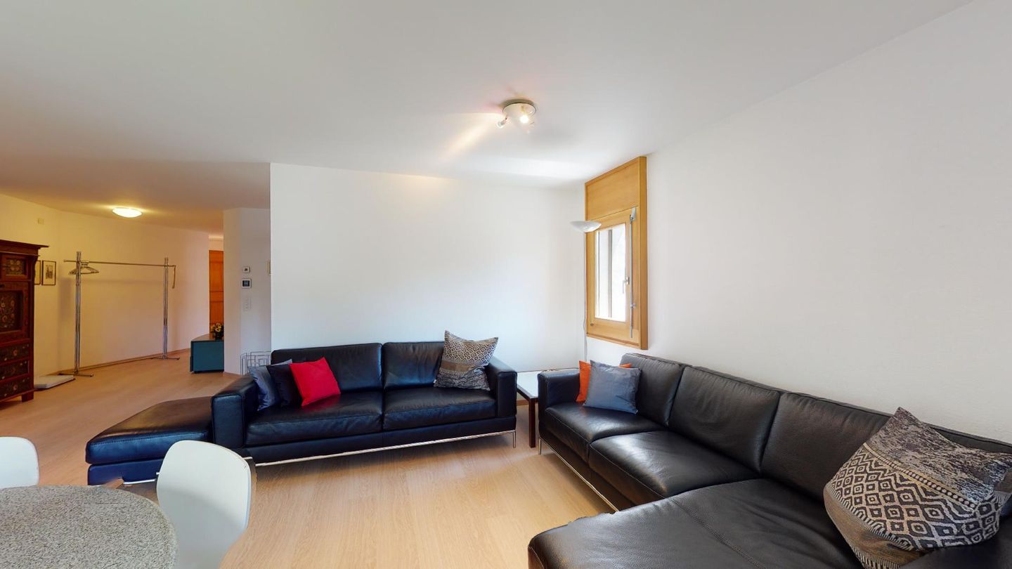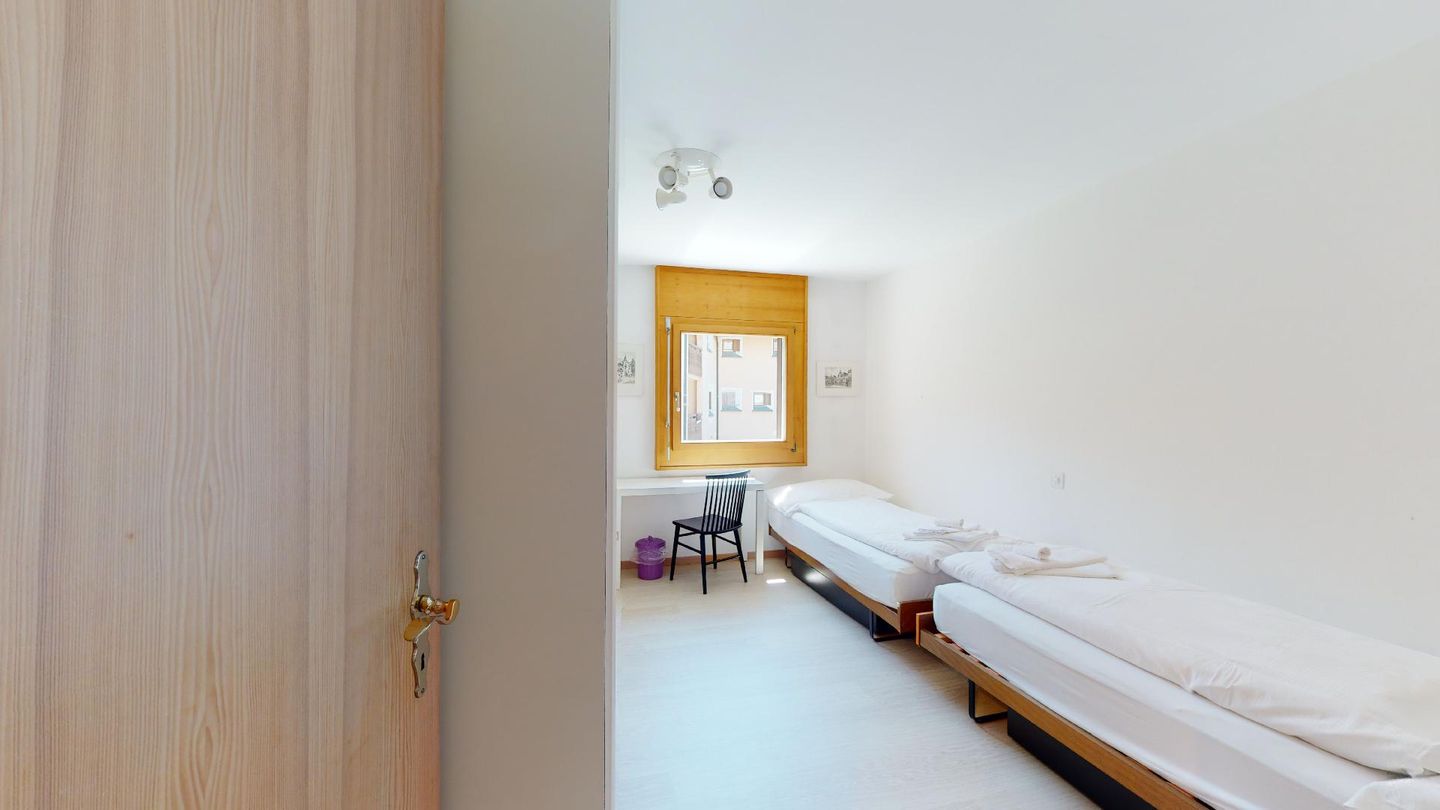 4-Zimmerwohnung im 1. Stock Segliasquartier, ca. 127 m². Eingang mit Garderobe. Ein Doppelzimmer mit Ausgang zum Balkon und Bad/WC/Doppellavabo, 2 separate Schlafzimmer mit je 2 Einzelbetten (+ ein Notklappbett) und Bad (Dusche/Lavabo/WC). Separate Küche mit Fenster, Backofen, Geschirrspüler, Kühlschrank und Tiefkühlabteil. Kaffeemaschine CHICCO D'ORO. Wohn/ Esszimmer mit Balkon (Nachmittagssonne) und Cheminee. Telefon, DAB-Radio mit CD Player und TV. 2 Garagenplätze und 1 Aussenparkplatz. Haustiere sind nicht erlaubt. Absolutes Rauchverbot.