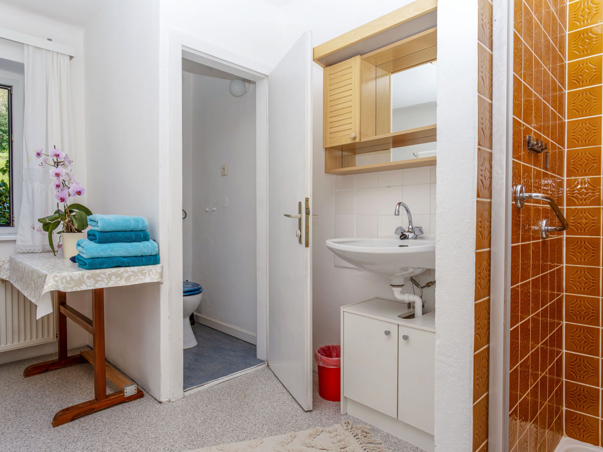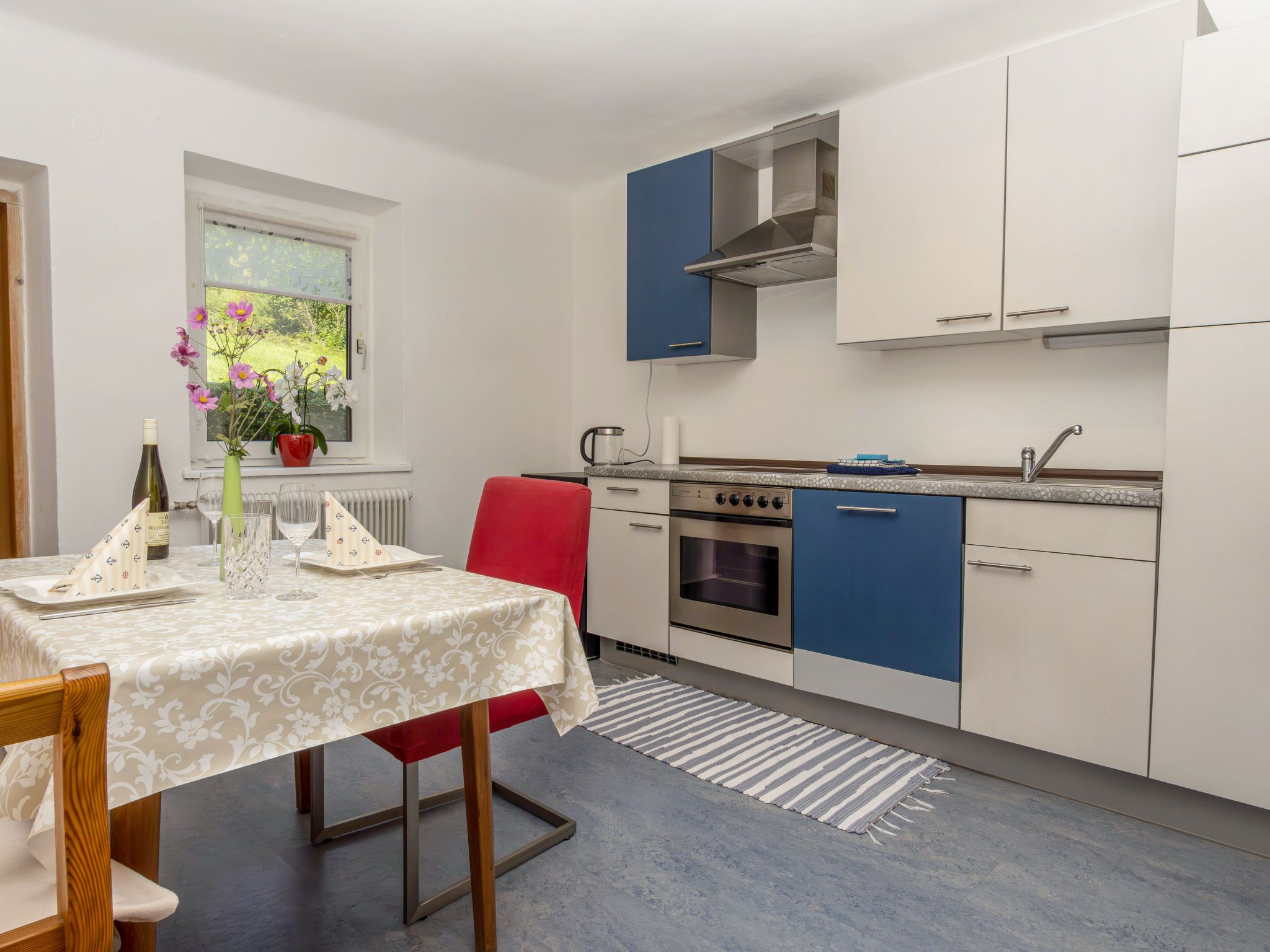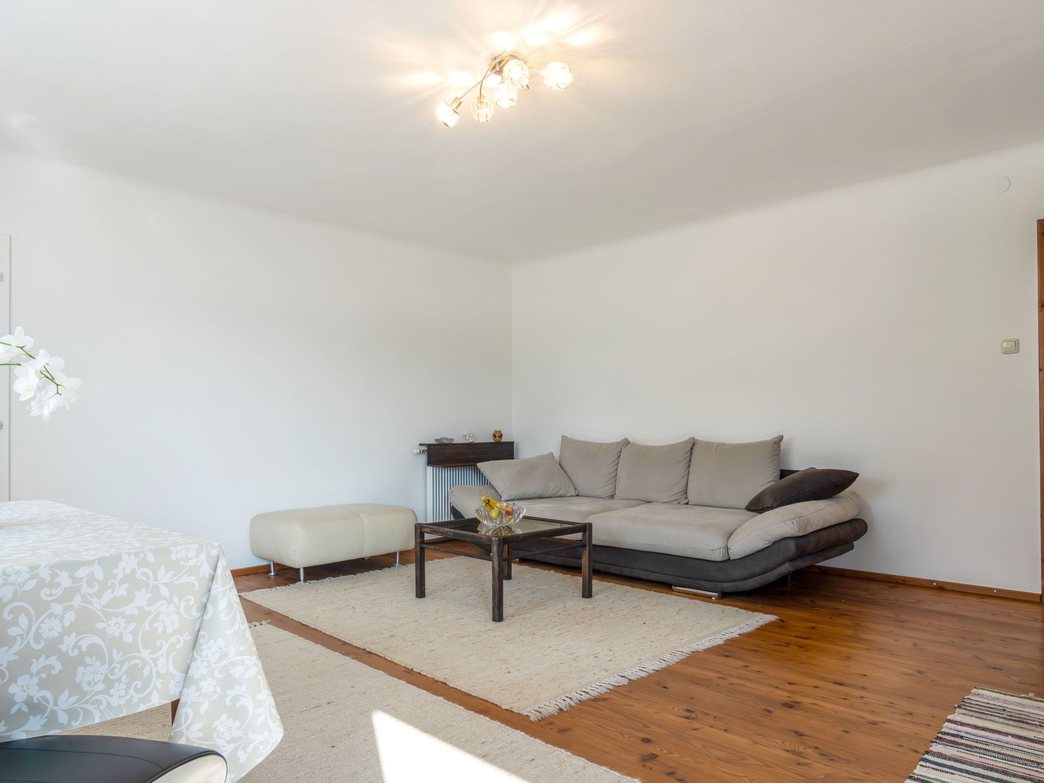 Carla, 2-Zimmer-Wohnung 86 m2, im Erdgeschoss. Objekt geeignet für 4 Erwachsene + 2 Kinder. Schön und geschmackvoll eingerichtet: Wohn-/Esszimmer mit 1 Doppeldiwanbett (140 cm, Länge 200 cm), Schwedenofen und Esstisch. Ausgang zur Terrasse. 1 Doppelzimmer. Grosse Küche (Geschirrspüler, 4 Glaskeramikplatten, Toaster, Wasserkocher, Mikrowelle, Tiefkühler, elektrische Kaffeemaschine) mit Esstisch. Dusche/WC. Heizung. Parkettboden. Garten. Terrassenmöbel. Sehr schöne Sicht auf den See. Bitte beachten: Nichtraucher-Haus.
