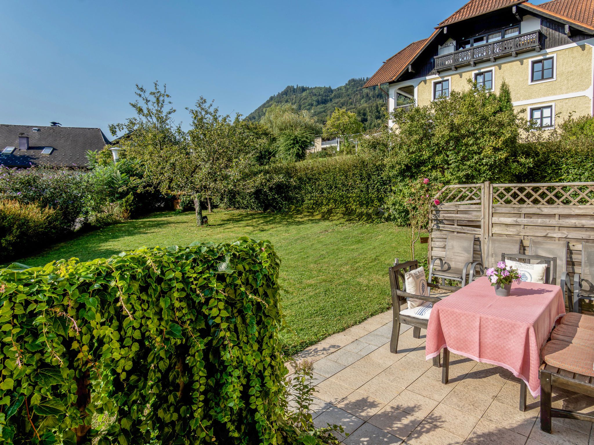 Nussdorf am Attersee: Ausgezeichnete Lage, atemberaubende Aussicht auf den See! Nur 5 Gehminuten zum See! Schöner Garten gemütliches Appartementhaus auf 3 Stockwerken, umgeben von Wiesen. Im Ort, 250 m vom Zentrum von Nussdorf am Attersee, zentrale, ruhige, sonnige Lage, 500 m vom See. Zur Alleinbenutzung: grosser, schöner Garten, Liegewiese. Terrasse, Gartenmöbel, Grill, Parkplatz beim Haus. Supermarkt 800 m, Einkaufszentrum 5 km, Restaurant, Bäckerei, Café 200 m, Bushaltestelle 564 300 m, Badesee 500 m. Golfplatz (18 Loch) 3 km, Segelschule, Tennis 500 m, Minigolf 4 km, Skilift 5 km, Skipisten 5 km. Nahe gelegene Sehenswürdigkeiten: Attersee Schiffahrt 500 m, Nixenfall 24 km, Reiserbauern-Mühle 7 km. Bekannte Seen in der Umgebung sind gut erreichbar: Attersee 500 m. Wandergebiete: Einstieg zum Westwanderweg 1 km. Objekt geeignet für 2 Erwachsene + 2 Kinder. Bitte beachten: Der Besitzer wohnt im selben Haus. Der Eigentümer akzeptiert keine Partys! Keine Hunde, keine Katzen!