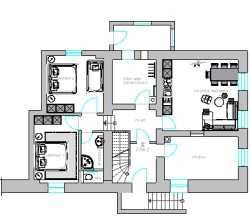 - 1 Dreibettzimmer mit einem Doppelbett(180x200) und einem Einzelbett (90x200)