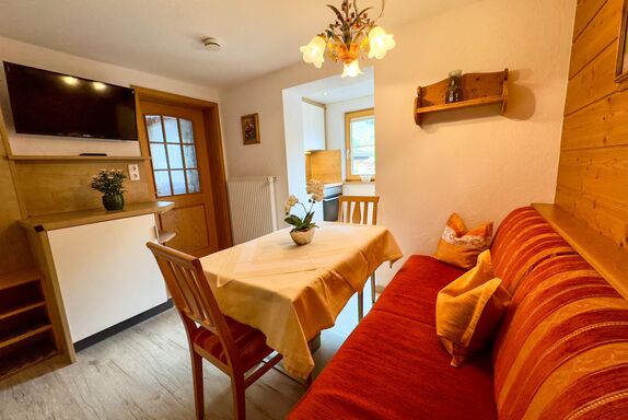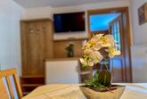 Das App. A mit 32 m² für 2 Personen liegt parterre mit zwei großen südseitigen Fenstern und ist mit einem separaten Schlaf- bzw. Wohnraum ausgestattet. Das Schlafzimmer ist relativ gräumig und ermöglicht zusätzlich das Aufstellen eines Kinderbettes oder einer Kindermatratze. In der Küche befindet sich zusätzlich ein Backofen,eine Geschirrspülmaschine und eine Kaffeemaschine. Internetanschluss über W-LAN.