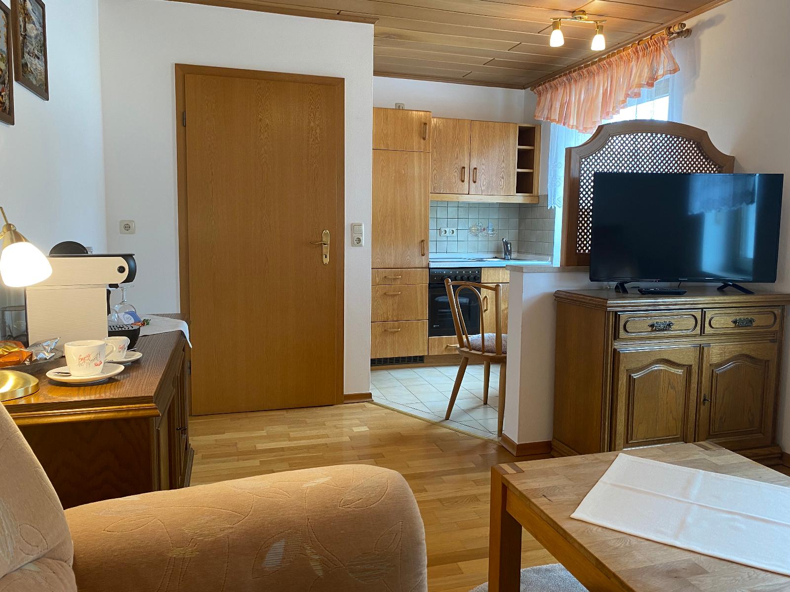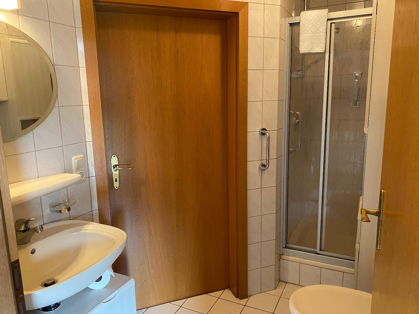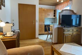 Das Schlafzimmer ist mit einem Doppelbett mit einer Größe von 1,60x 2,00 m ausgestattet und verfügt über ein Badezimmer mit Dusche und WC. Zudem hält das Nichtraucherappartement für Sie einen Foen, TV und kostenfreies WLAN bereit.