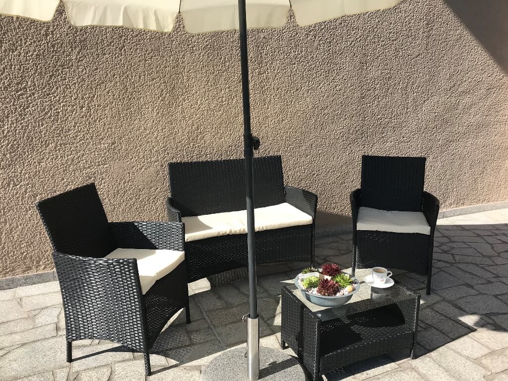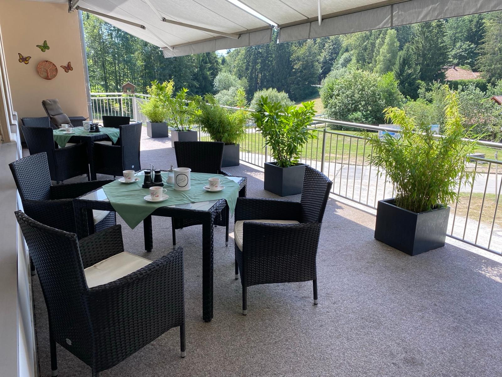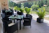 Gern können Sie auf der Terrasse mit Sitzgelegenheit ereignisreiche Tage gemütlich bei einem Glas Wein oder Bier ausklingen lassen und den Sonnenuntergang genießen.