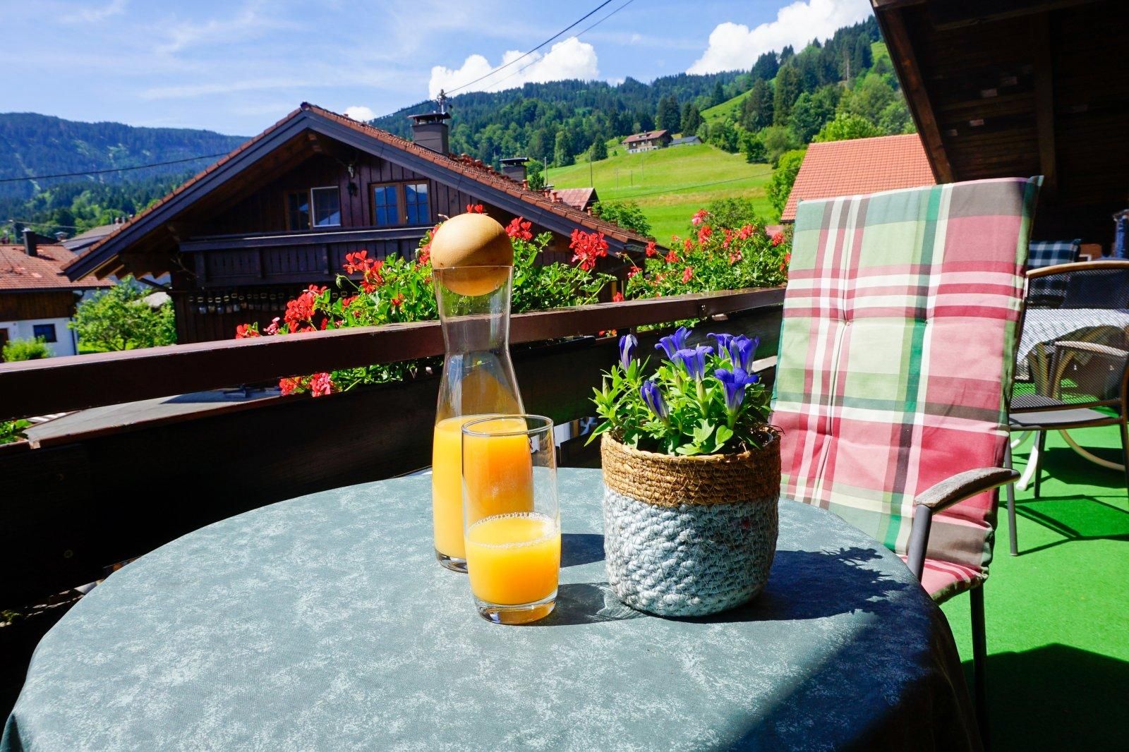 in nächster Nähe zur Hörnerbahn mit Wander- und Skigebiet sowie Loipen, Bushaltestelle und Dorfladen.