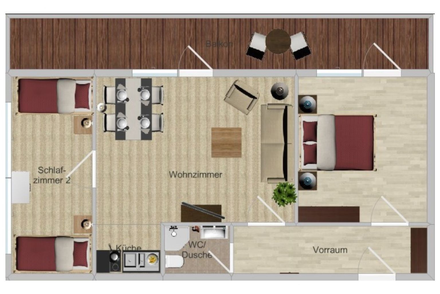 Appartement Typ D eignet sich perfekt für Paare, Familien oder Freundesgruppen, die eine komfortable und flexible Unterkunft suchen.