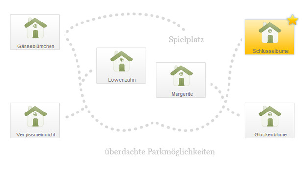 Für jedes Haus ist ein Carport oder ein Abstellplatz vorhanden.