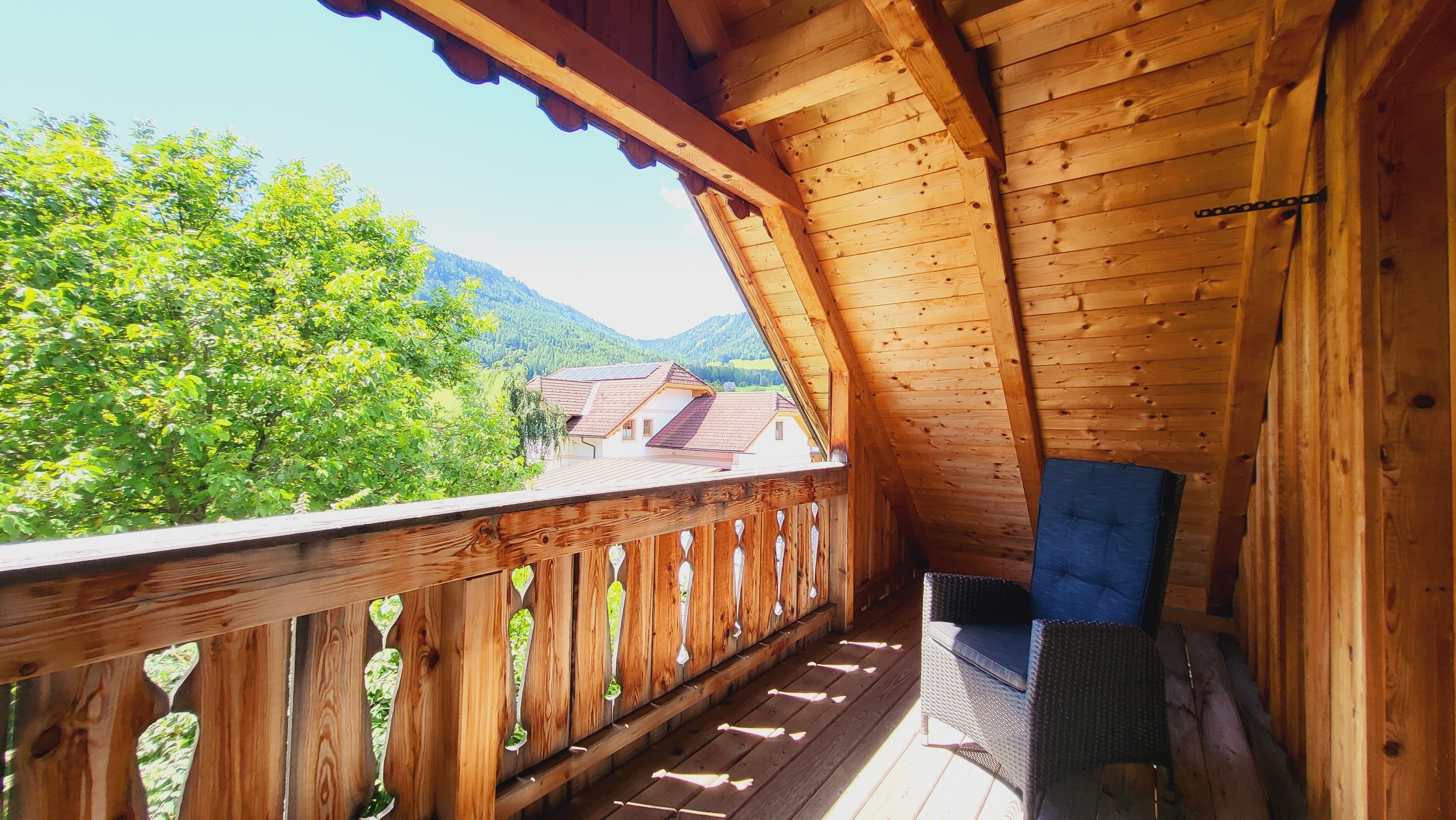Von der überdachten Terrasse oder dem windgeschützten Balkon haben Sie einen herrlichen Blick auf die umliegenden Berggipfel. Ein schöner Garten und der Kinderspielplatz bieten im Sommer Abwechslung für Groß und Klein.