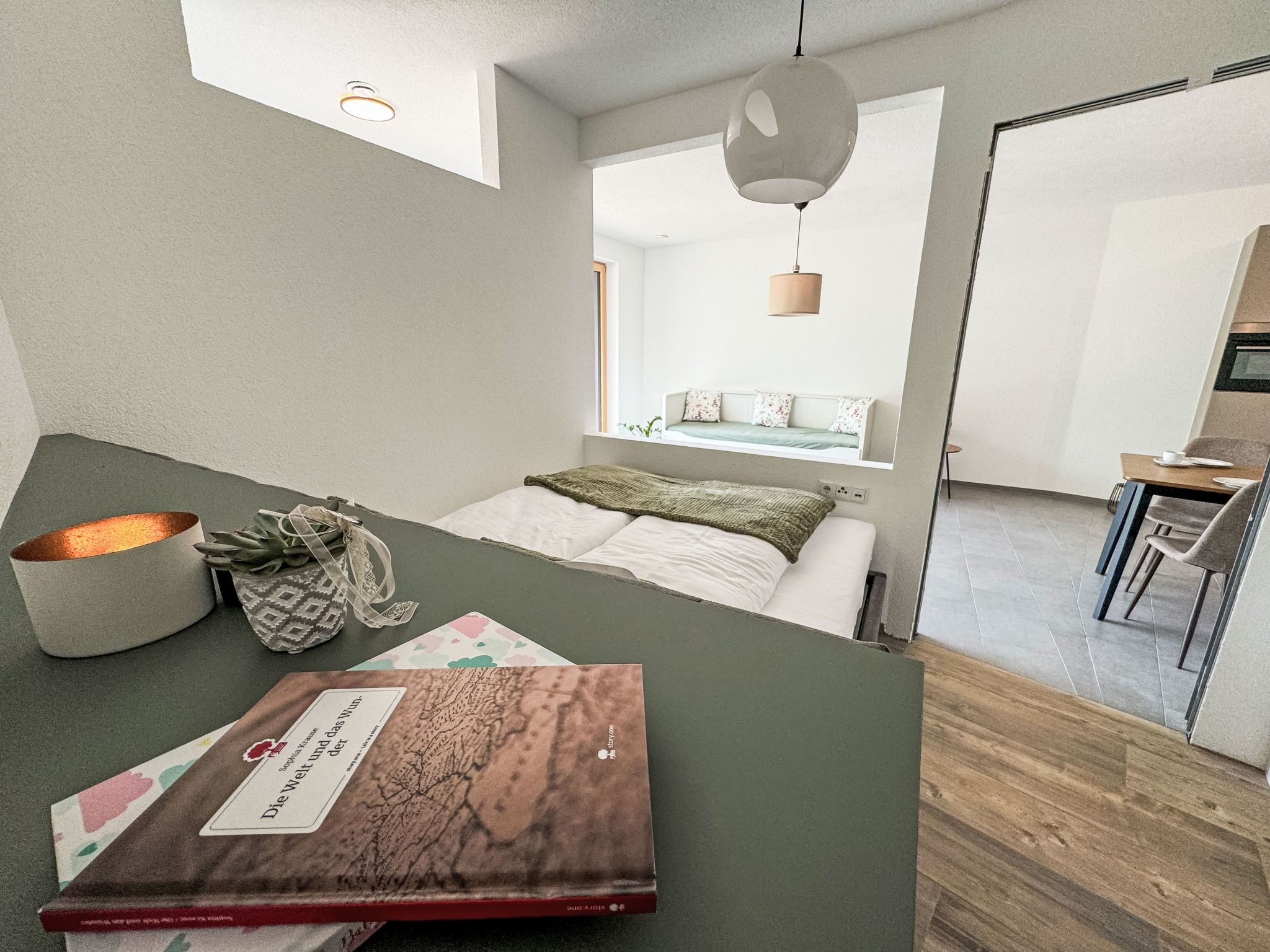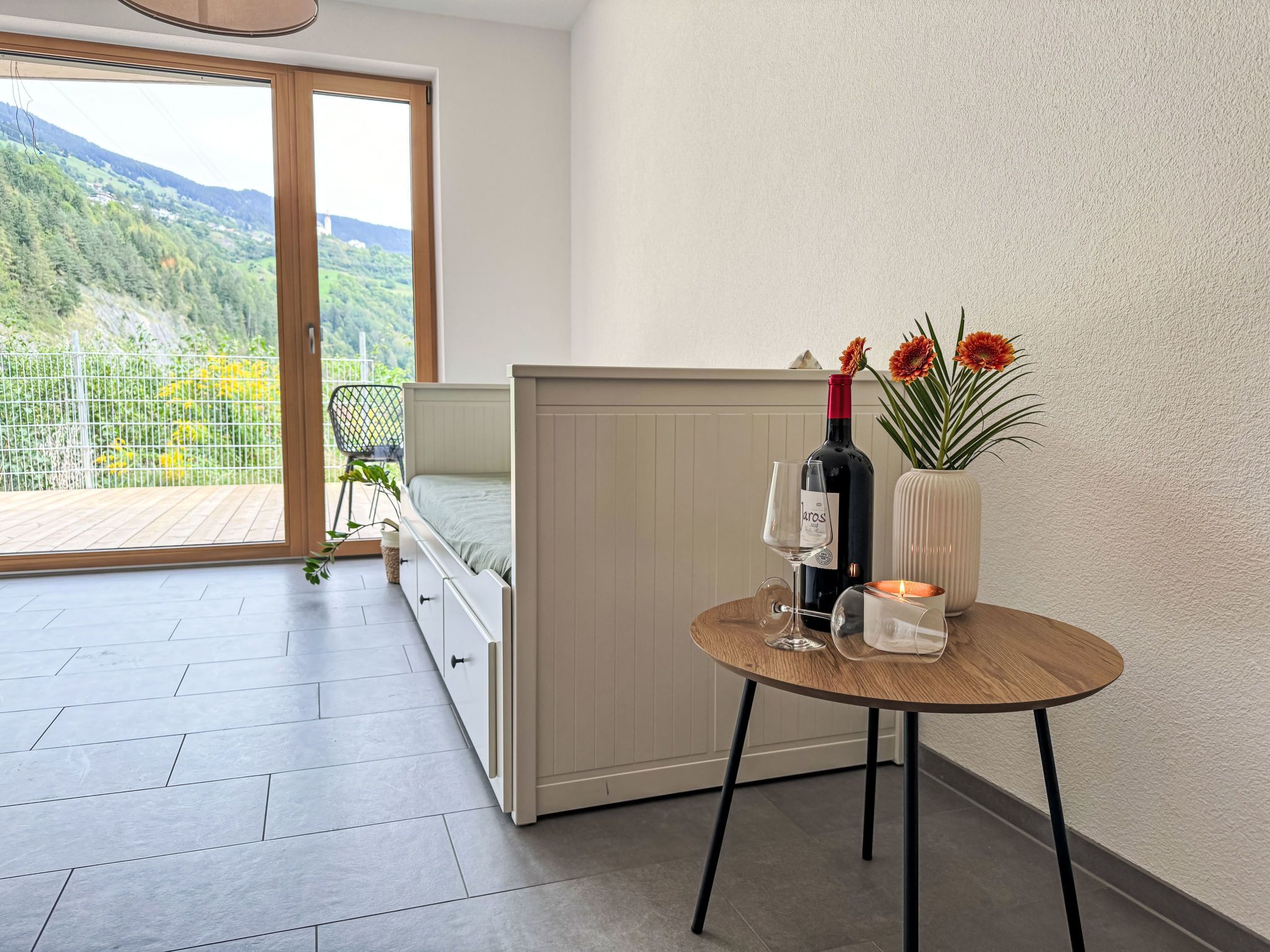 Urgen Living, 1-Zimmer-Wohnung 40 m2, unteres Geschoss. Objekt geeignet für 2 Erwachsene + 2 Kinder. Offenes Wohn-/Esszimmer mit 1 Ausziehbett, Bad/Dusche/WC und Sat-TV. 1 offenes Zimmer mit 1 franz. Bett. Offene Küche (Backofen, Geschirrspüler, 4 Glaskeramikplatten, Wasserkocher, Tiefkühler, elektrische Kaffeemaschine, Kombinationsmikrowelle). Bodenheizung. Natursteinboden. Terrassenmöbel. Sehr schöne Fernsicht auf die Berge. Zur Verfügung: Internet (Wireless LAN). Nichtraucherunterkunft. Rauchen ist nur auf der Terrasse gestattet. Kinderhochstuhl und Kinderbett inkl.