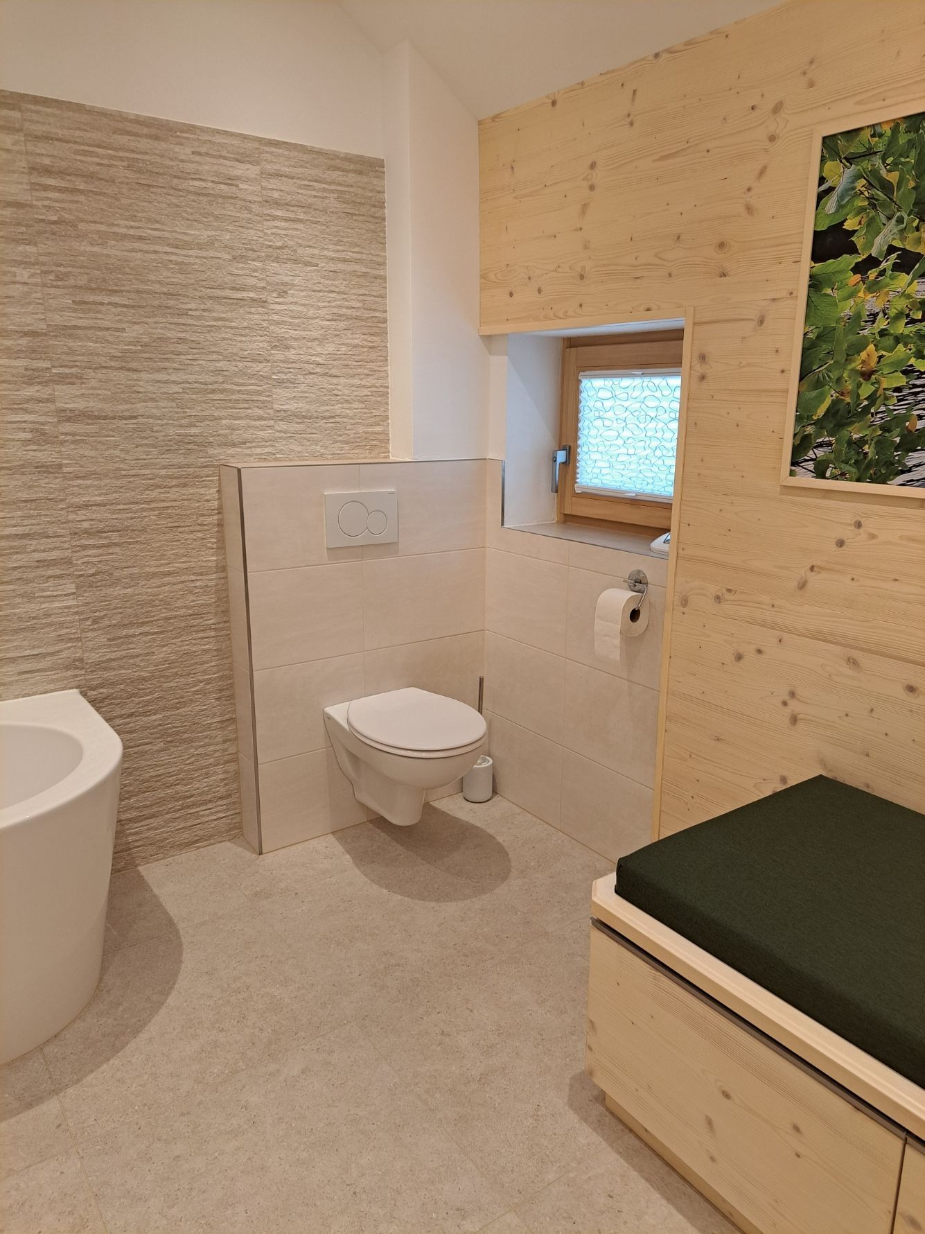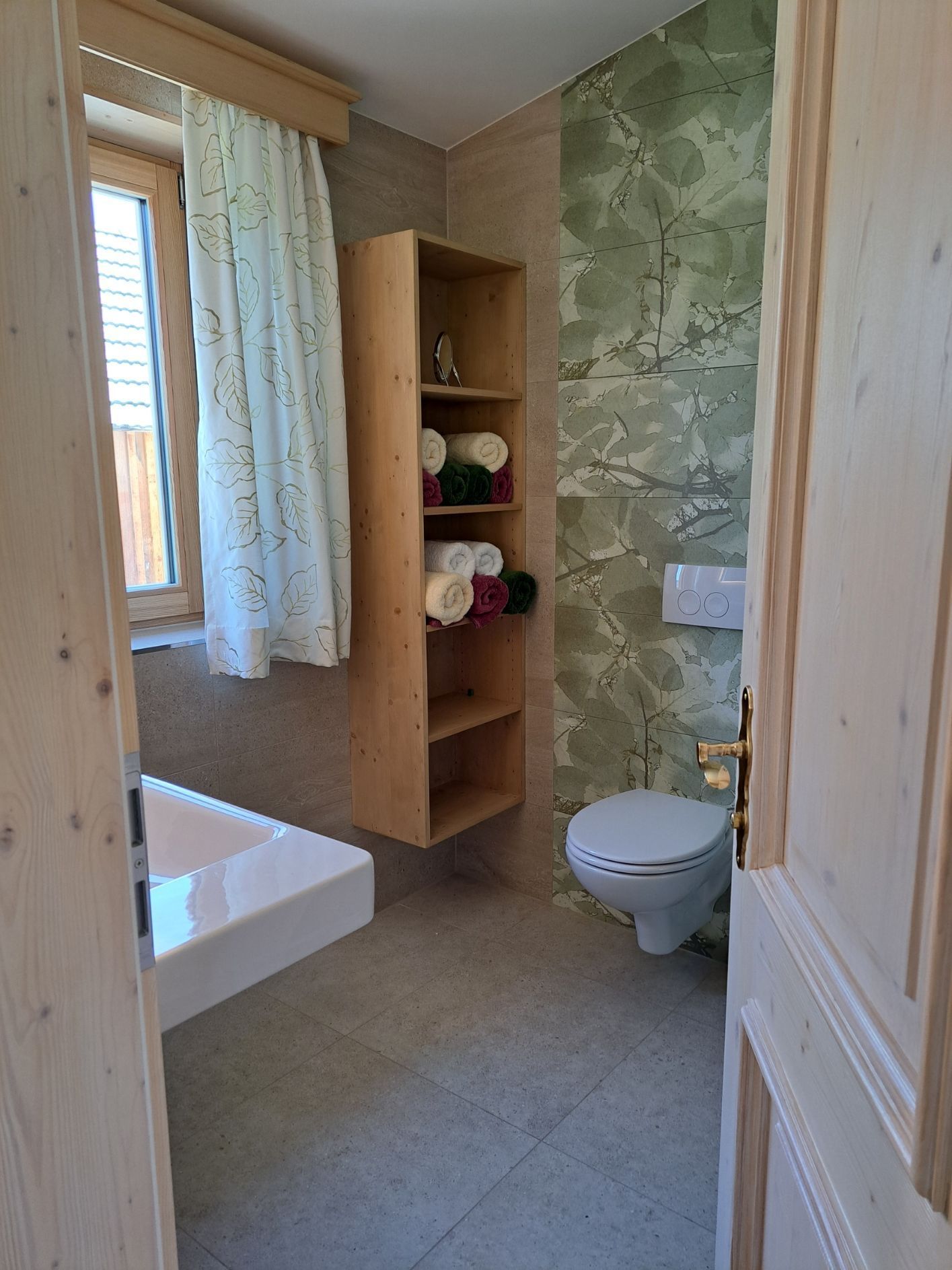 Auch das Badezimmer befindet sich im Erdgeschoss mit Badewanne und Dusche in einem sowie der Toilette. Bade- und Handtücher stehen selbstverständlich zur Verfügung.
