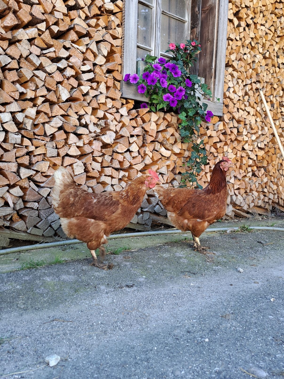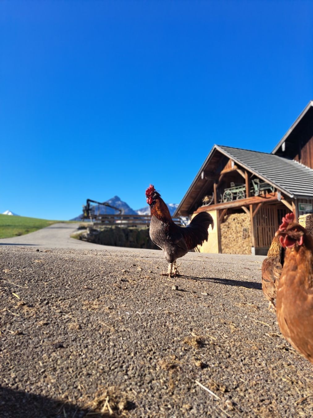 Am Bauernhof selbst gibt es Kühe, Hühner und Katzen. Die Kinder dürfen natürlich mitgehen in den Stall und mithelfen.