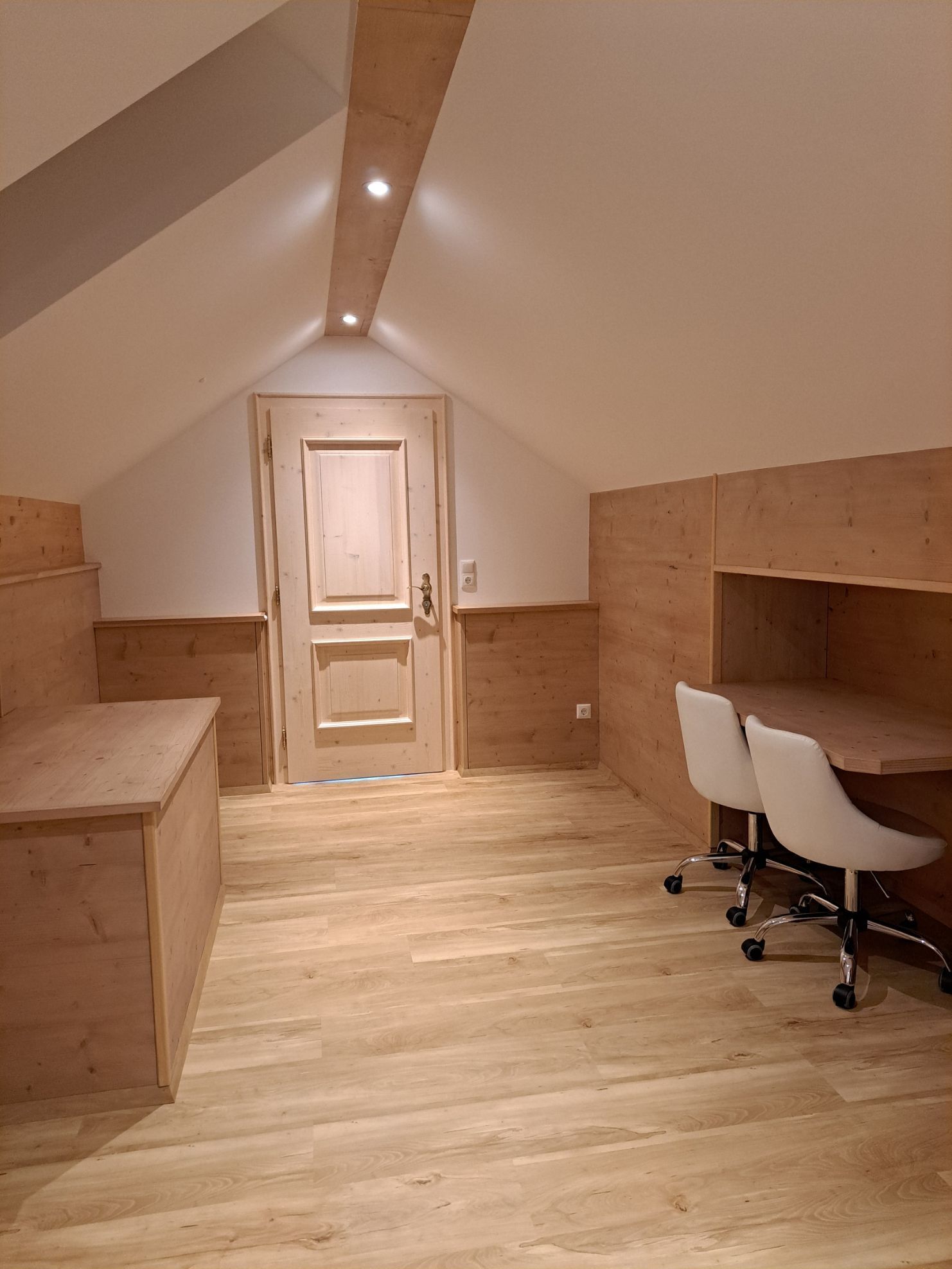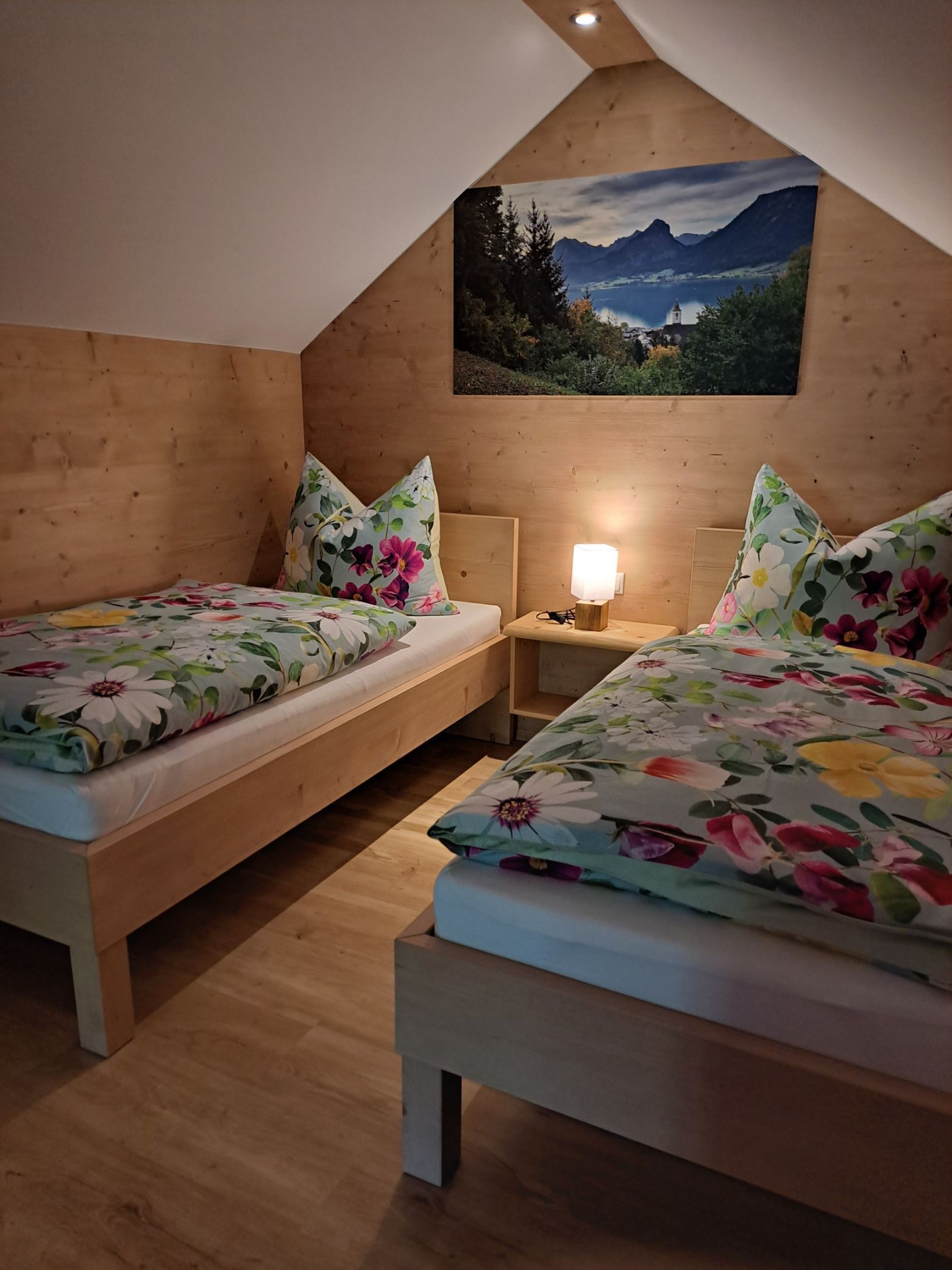 Im ersten Stock befindet sich das erste Schlafzimmer mit Doppelbett großräumigen Kasten und gemütlichen Sitzgelegenheiten zum lesen und zurückziehen. Im zweiten Stock finden Sie dann unser zweites Schlafzimmer mit Doppelbett, einer kleinen Wohnlandschaft, Sat TV, dem kleineren Bad und einer traumhaften Aussicht auf die umliegenden Berge. Vom Schlafzimmer ist auch unser großräumiger Balkon zugänglich. Über eine kleine Treppe im 2 Stock gelangen Sie ins dritte Schlafzimmer (Kinderzimmer) mit zwei Einzelbetten einen Schreibtisch mit zwei Sesseln und viel Platz zum spielen.