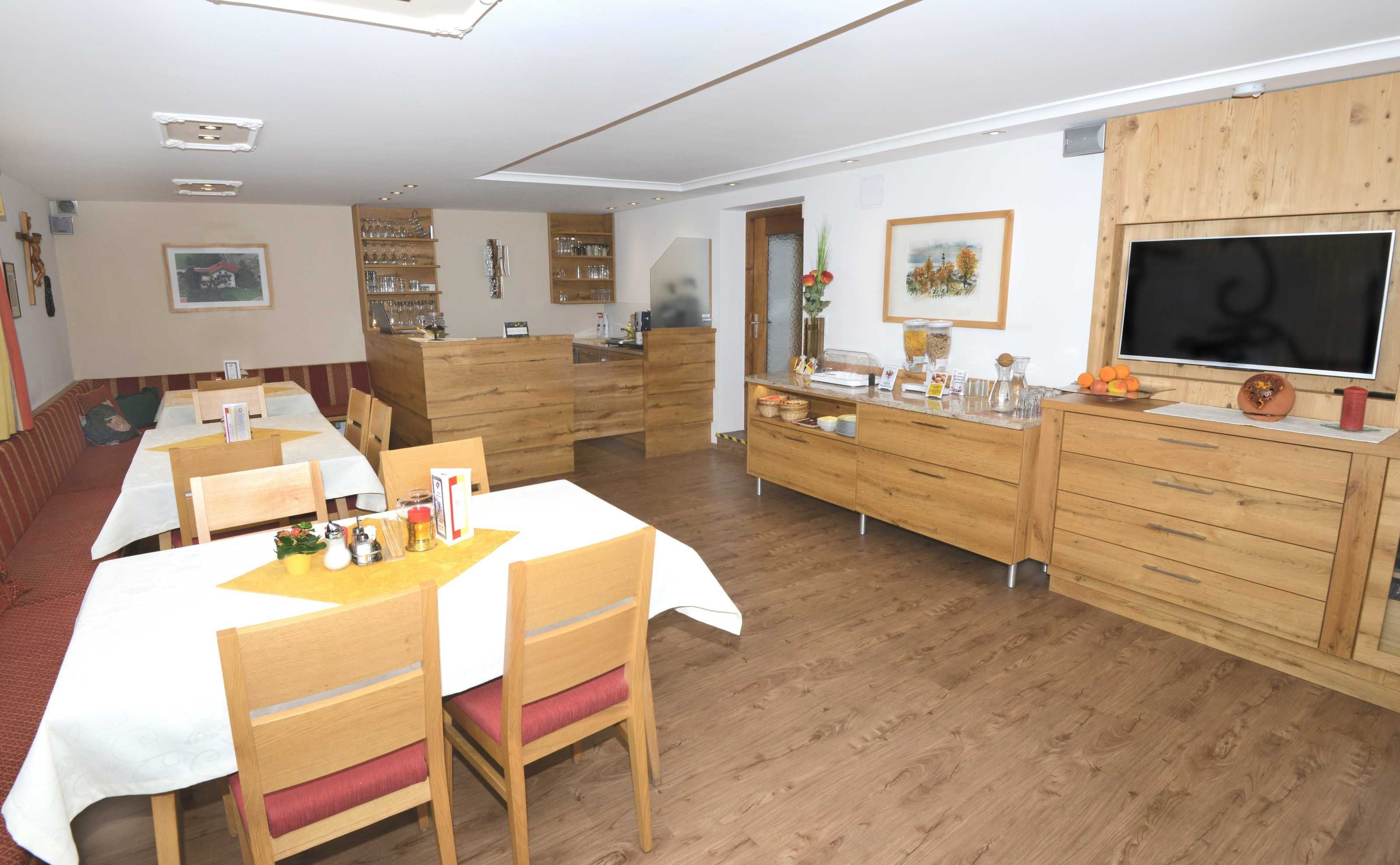 Am Morgen reichen wir Ihnen ein reichhaltiges Frühstücksbuffet für einen guten Start in den Tag. Das servieren wir Ihnen in unseren neuen komfortablem Frühstücks- bzw. Aufenthaltsraum mit TV.