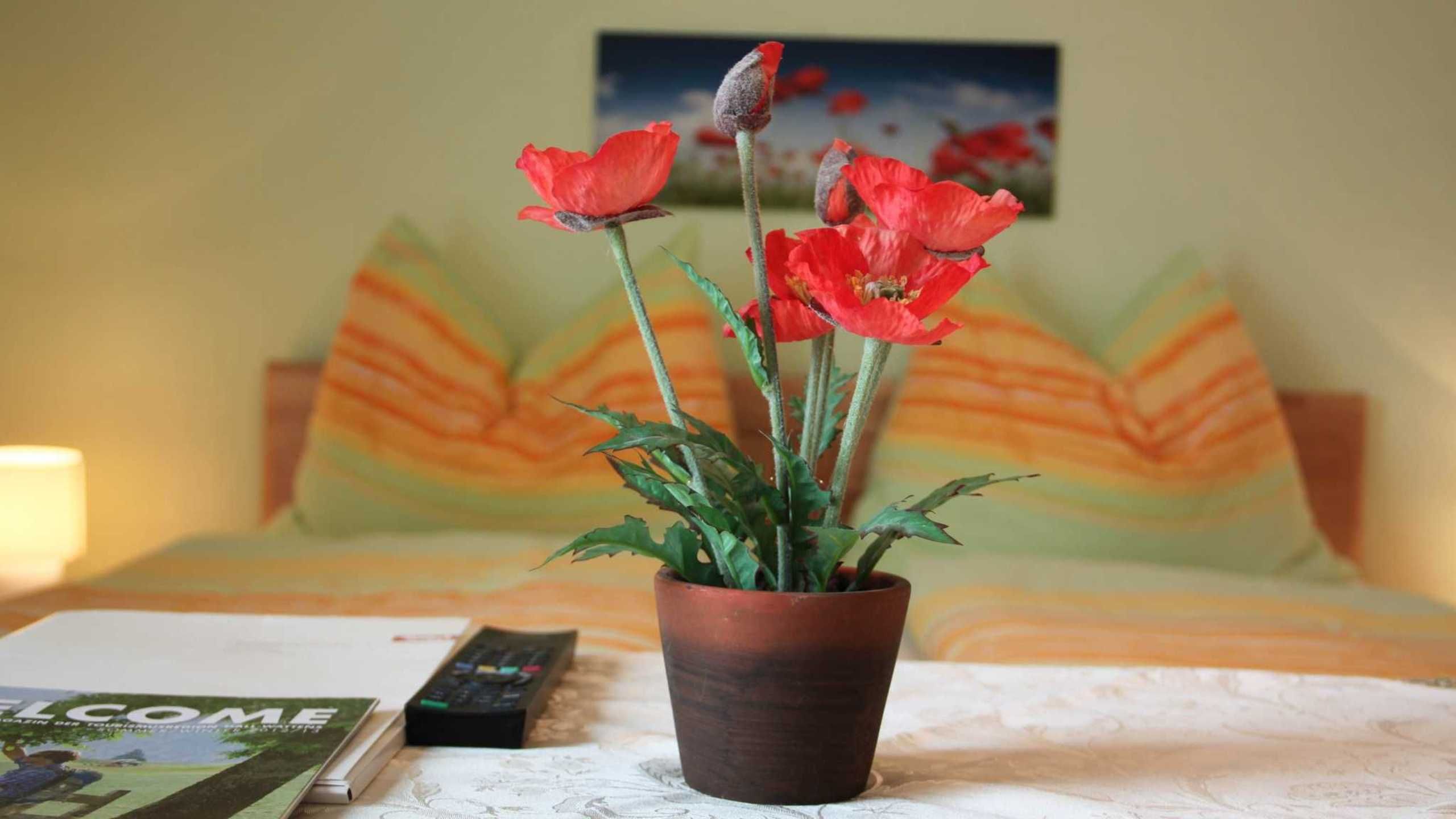 Wir bieten Ihnen schöne Doppelzimmer, alle mit Dusche, WC, Haarfön und Sat TV, Doppelbett (180x200),