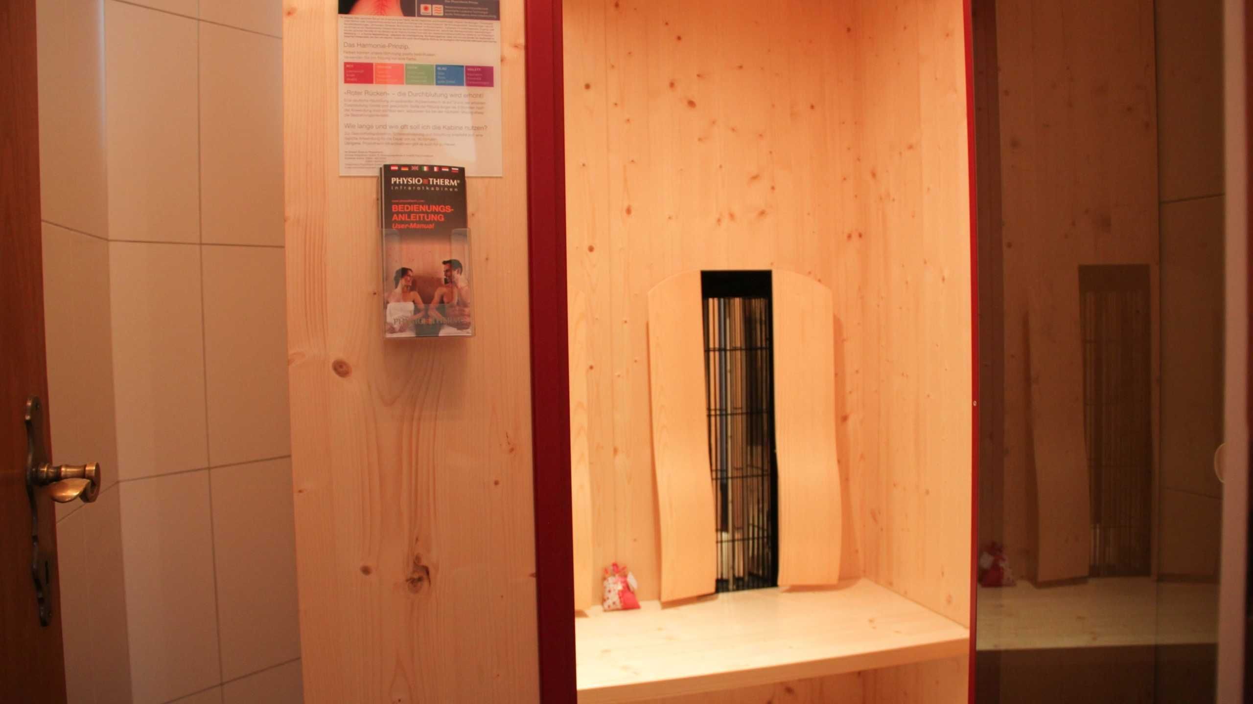 Zur Anregung Ihrer Vitalität und Gesundheit bietet sich ganzjährig unsere neue Physiotherm Infrarot Kabine an. Wir bitten unsere Gäste vor Ort um Voranmeldung.