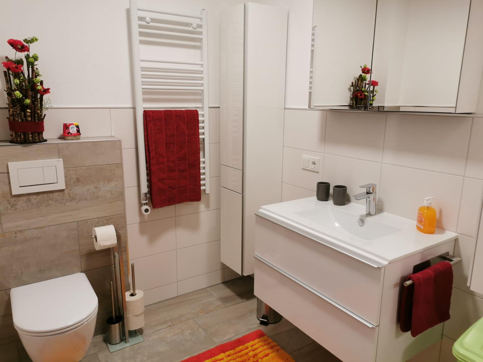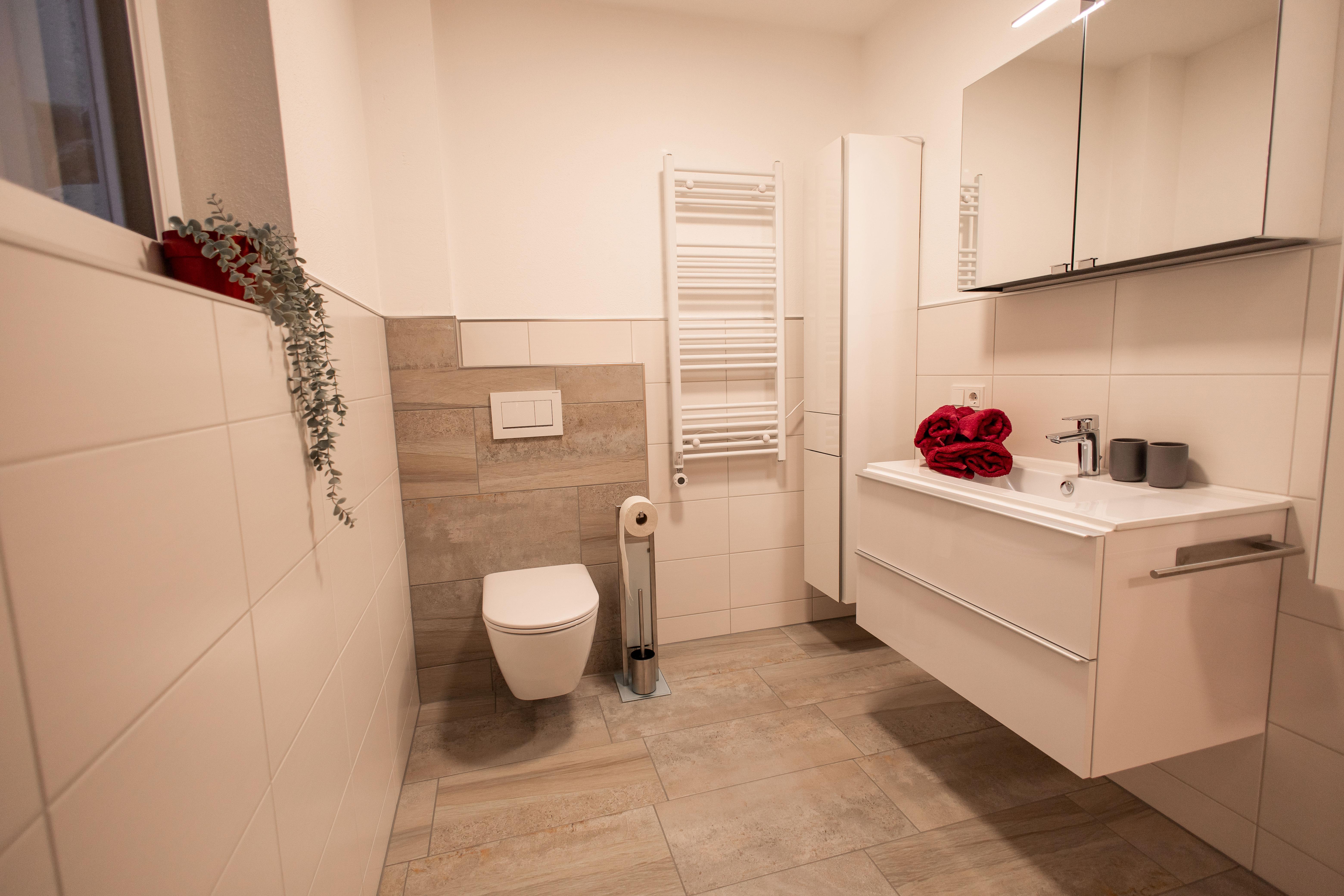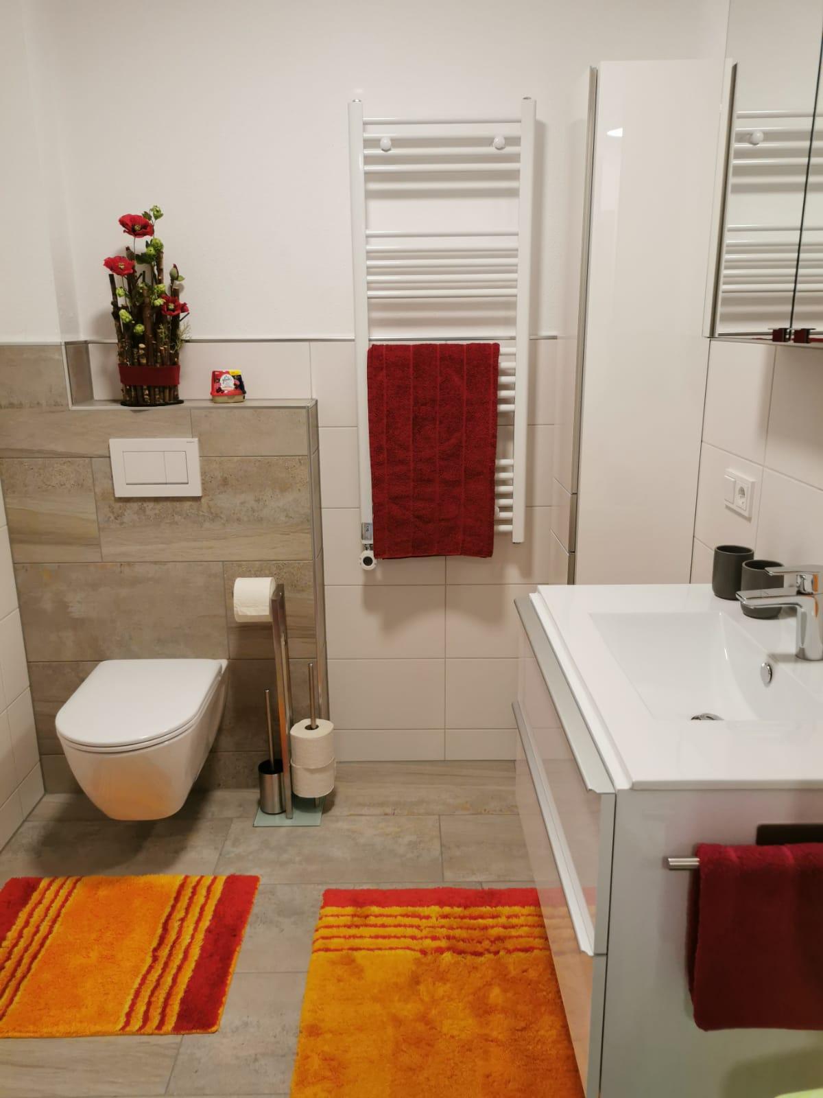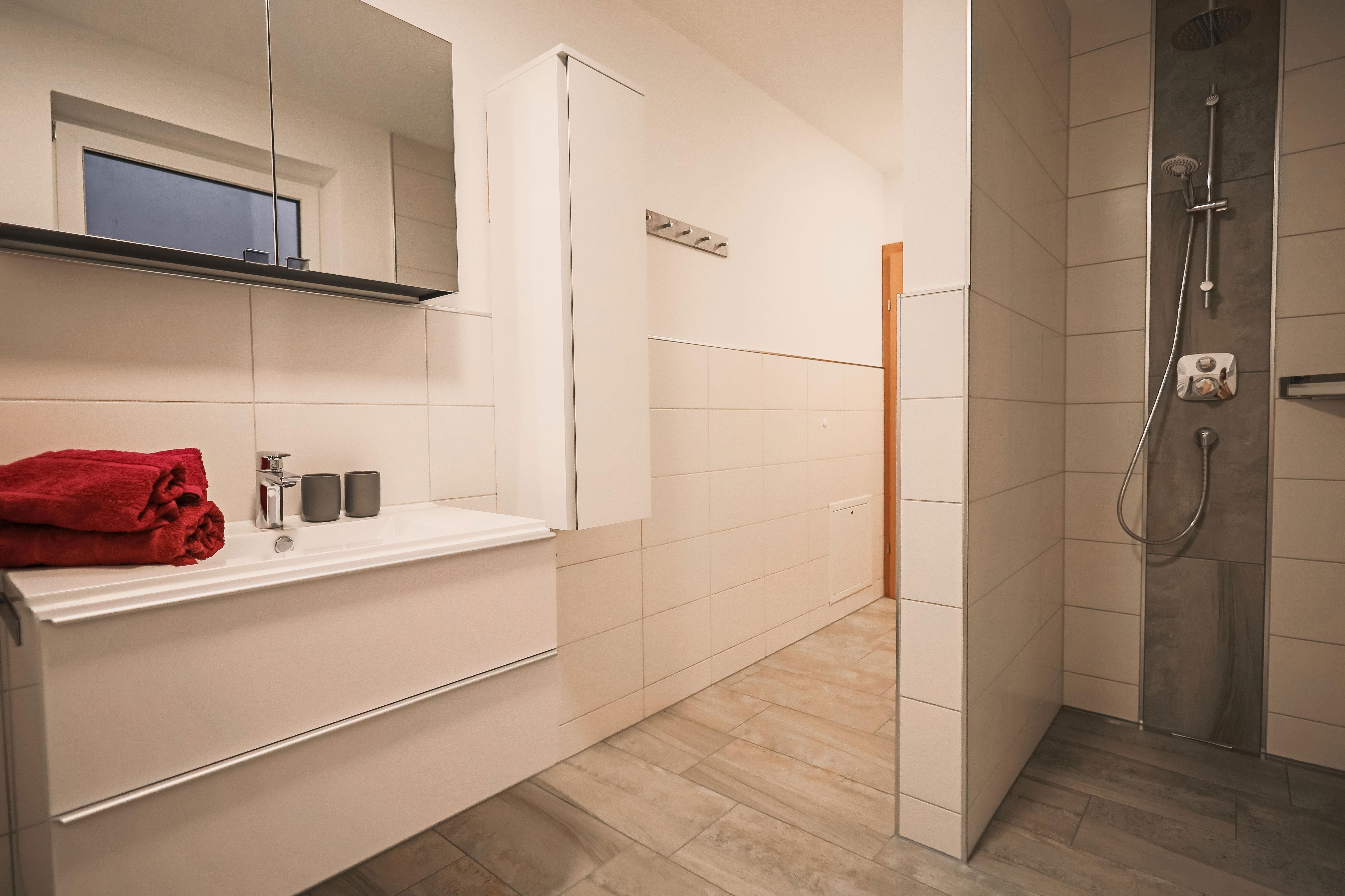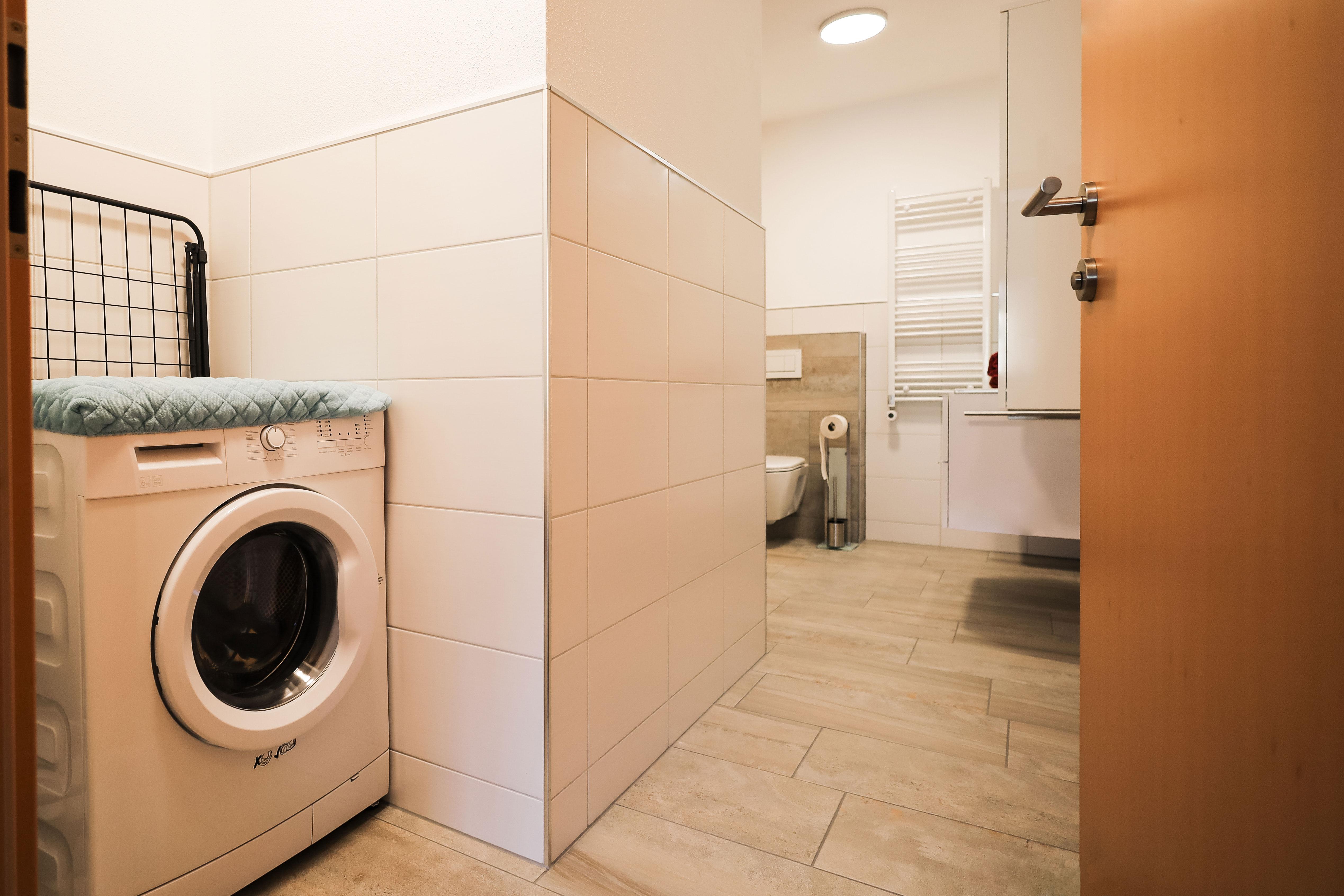 • 1 Badezimmer ausgestattet mit Dusche, WC, Waschmaschine, Handtuchtrockner, Föhn, Handtücher