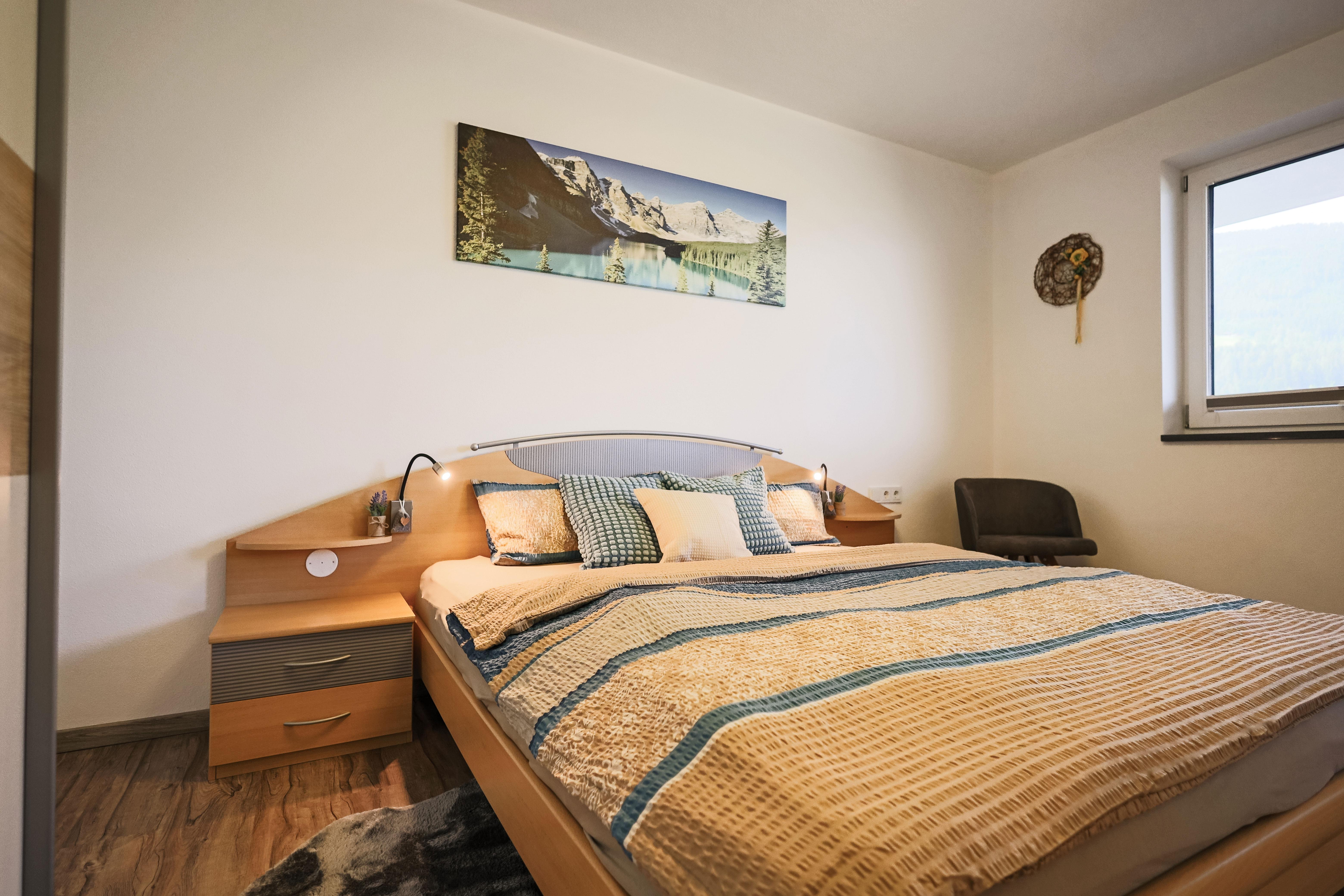 • 1 Schlafzimmer ausgestattet mit einem Doppelbett (Zustellbett für die 3. Person auf Anfrage)