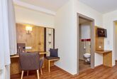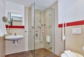 Unser geräumiges und barrierefreies Appartement bietet auf 80 m² höchsten Komfort für bis zu 4 Personen. Das luxuriöse Schlafzimmer und Badezimmer sind vollständig barrierefrei gestaltet, inklusive einer ebenerdigen Dusche und einem behindertengerechten WC. Zusätzlich gibt es ein weiteres Doppelzimmer mit eigenem Badezimmer (Dusche/WC). Die moderne Wohnküche ist voll ausgestattet mit hochwertigen Elektrogeräten, einem Essbereich sowie einem gemütlichen Sofa. Ein Flat-TV und kostenfreies WLAN sorgen für Unterhaltung und Bequemlichkeit. Der Eingangsbereich verfügt über eine Garderobe, und das gesamte Haus ist über einen Aufzug barrierefrei zugänglich.