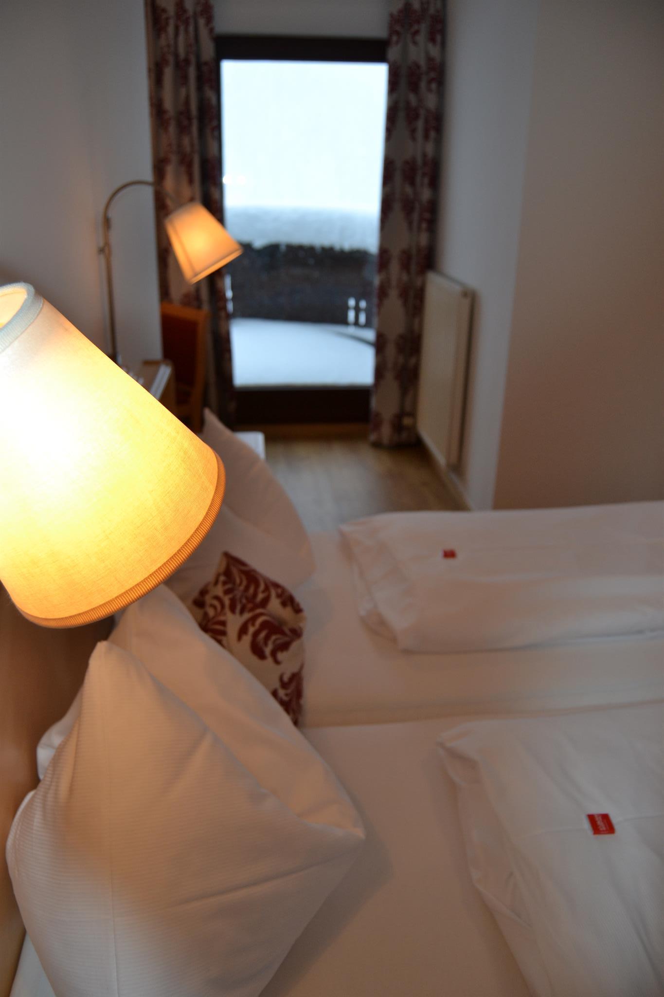 In einigen unserer Doppelzimmer befindet sich ein drittes Bett. Ein Doppelzimmer ohne Balkon.