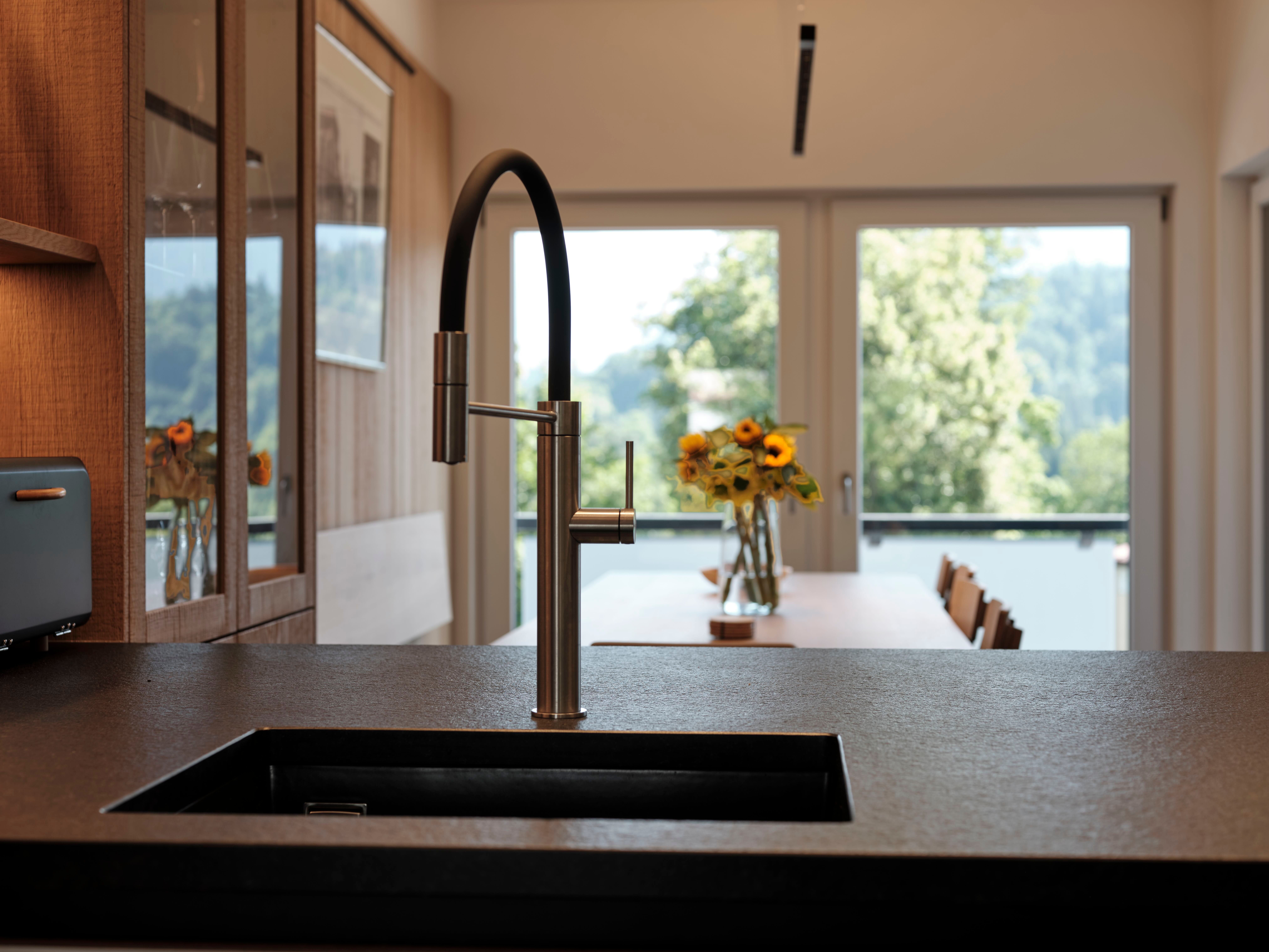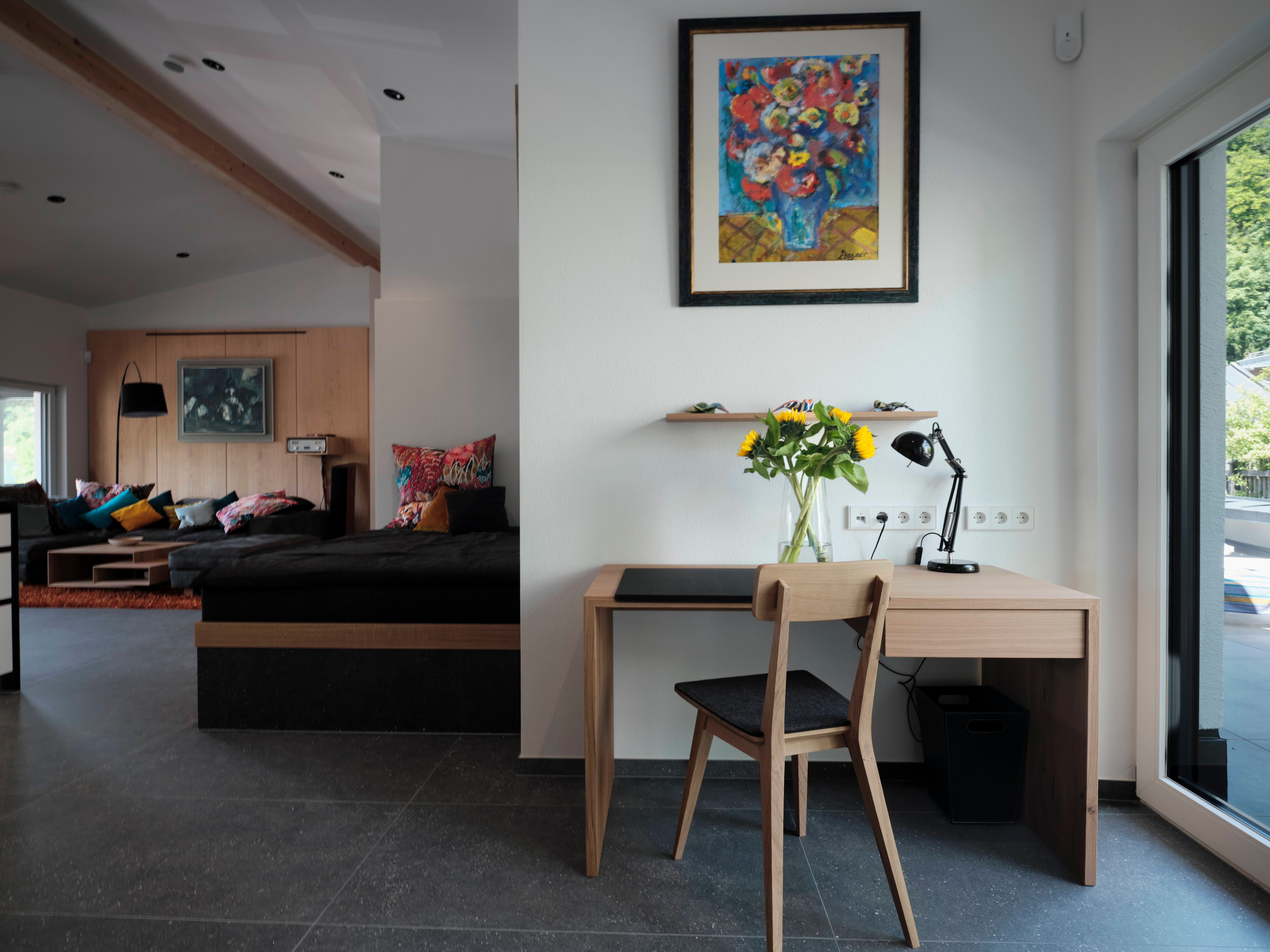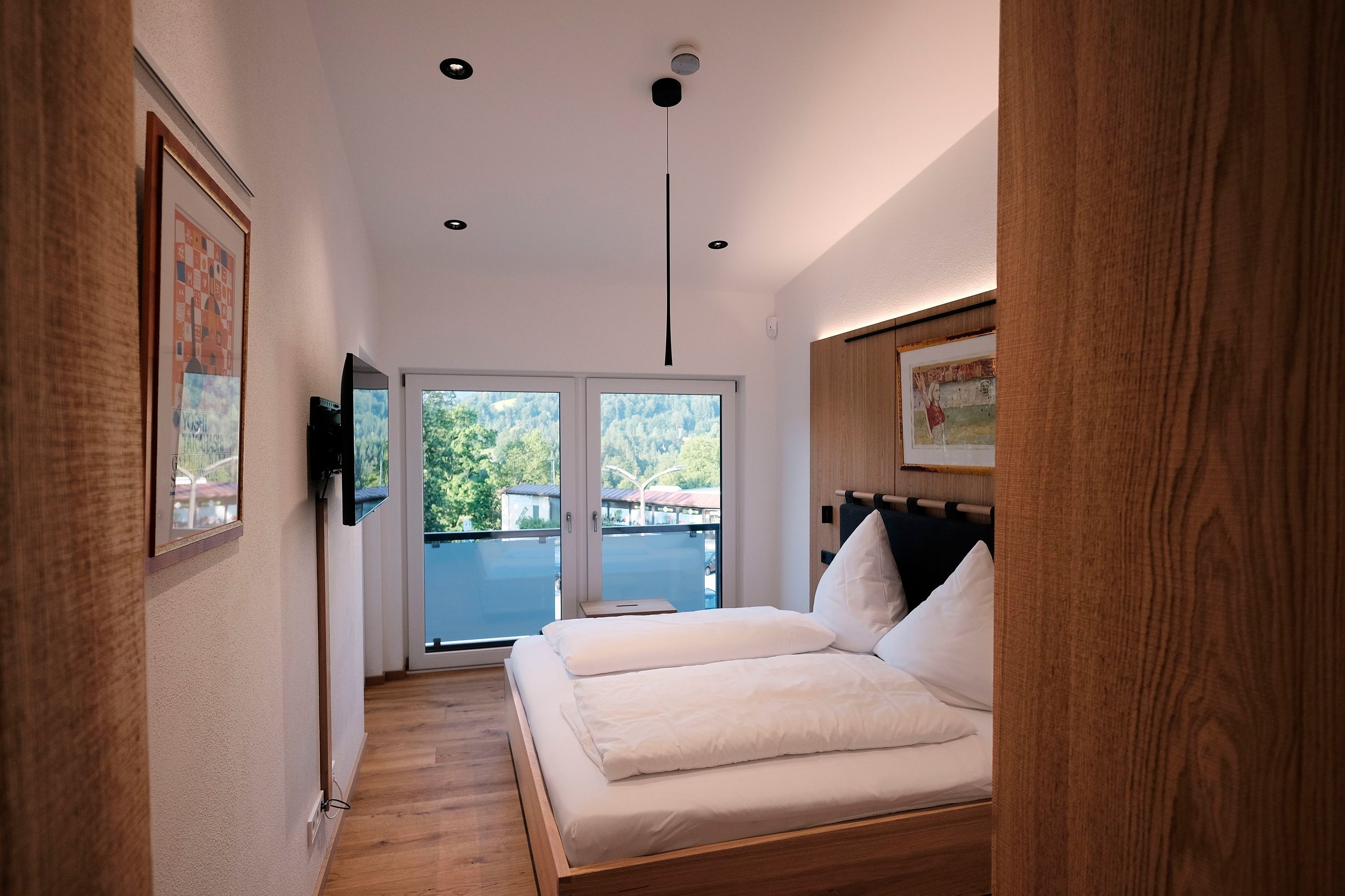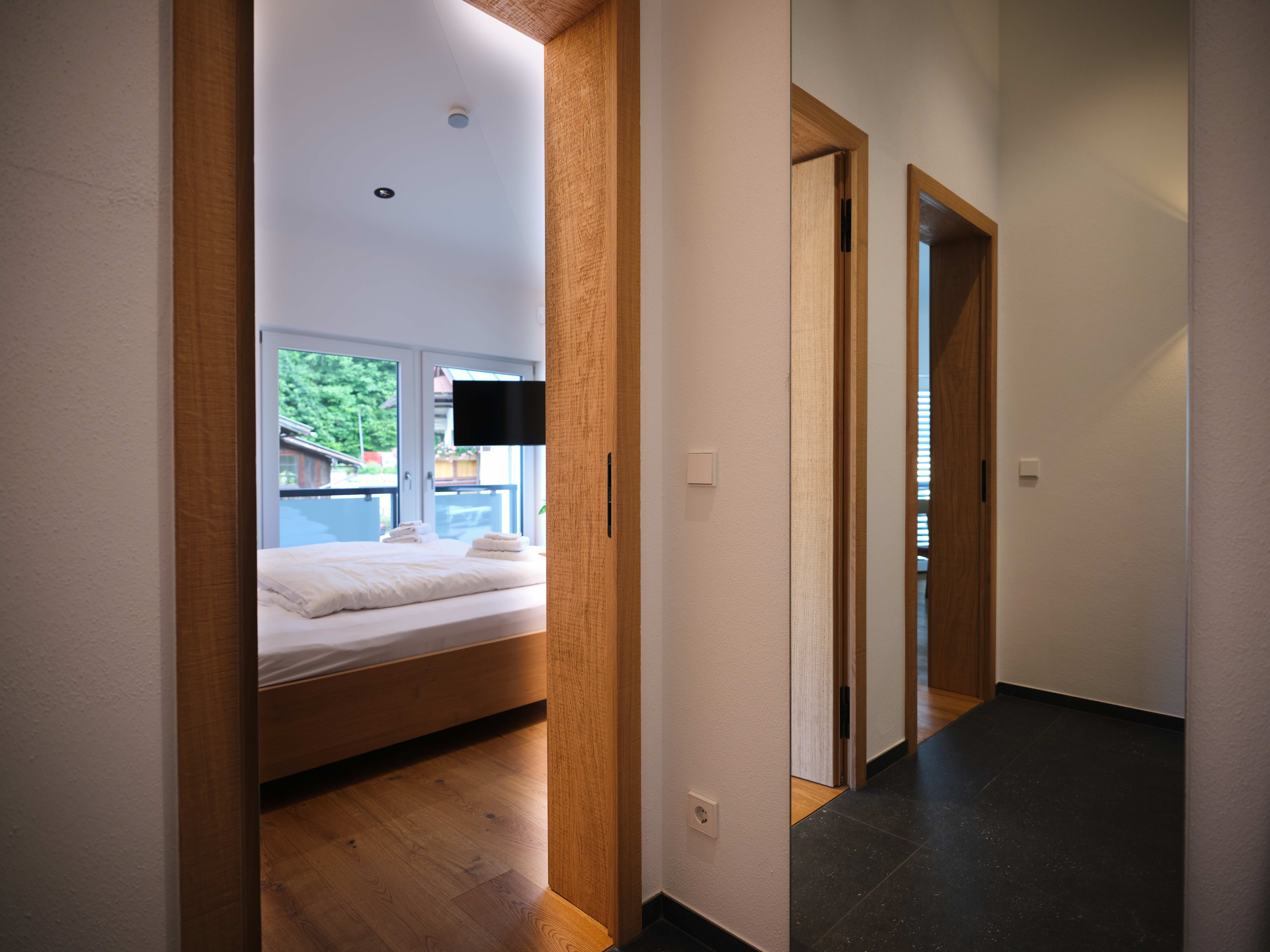 Unser Penthouse liegt im zweiten Stock eines hochwertigen Neubaus und ist barrierearm über den Aufzug erreichbar. Bodentiefe Fenster öffnen den Blick auf die Berge. Hohe Decken, sichtbare Holzelemente und ein stimmiges Lichtkonzept schaffen ein offenes Raumgefühl im Stil eines modernen Chalets.